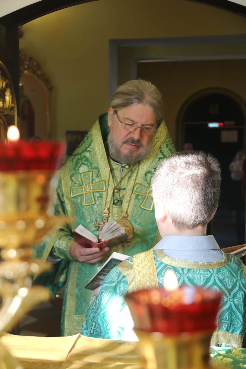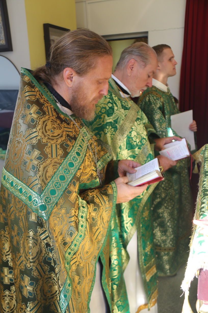 Его Преосвященству сослужили: протоиерей Александр Коваленко, настоятель Свято-Георгиевского храма, иерей Роман Капитанюк, настоятель храма святого апостола Андрея Первозванного ЗАТО г. Фокино; иерей Иоанн Капитанюк, настоятель храма Рождества Христова г. Находки; иерей Андрей Калнин, ризничий Казанского Кафедрального собора г. Находки