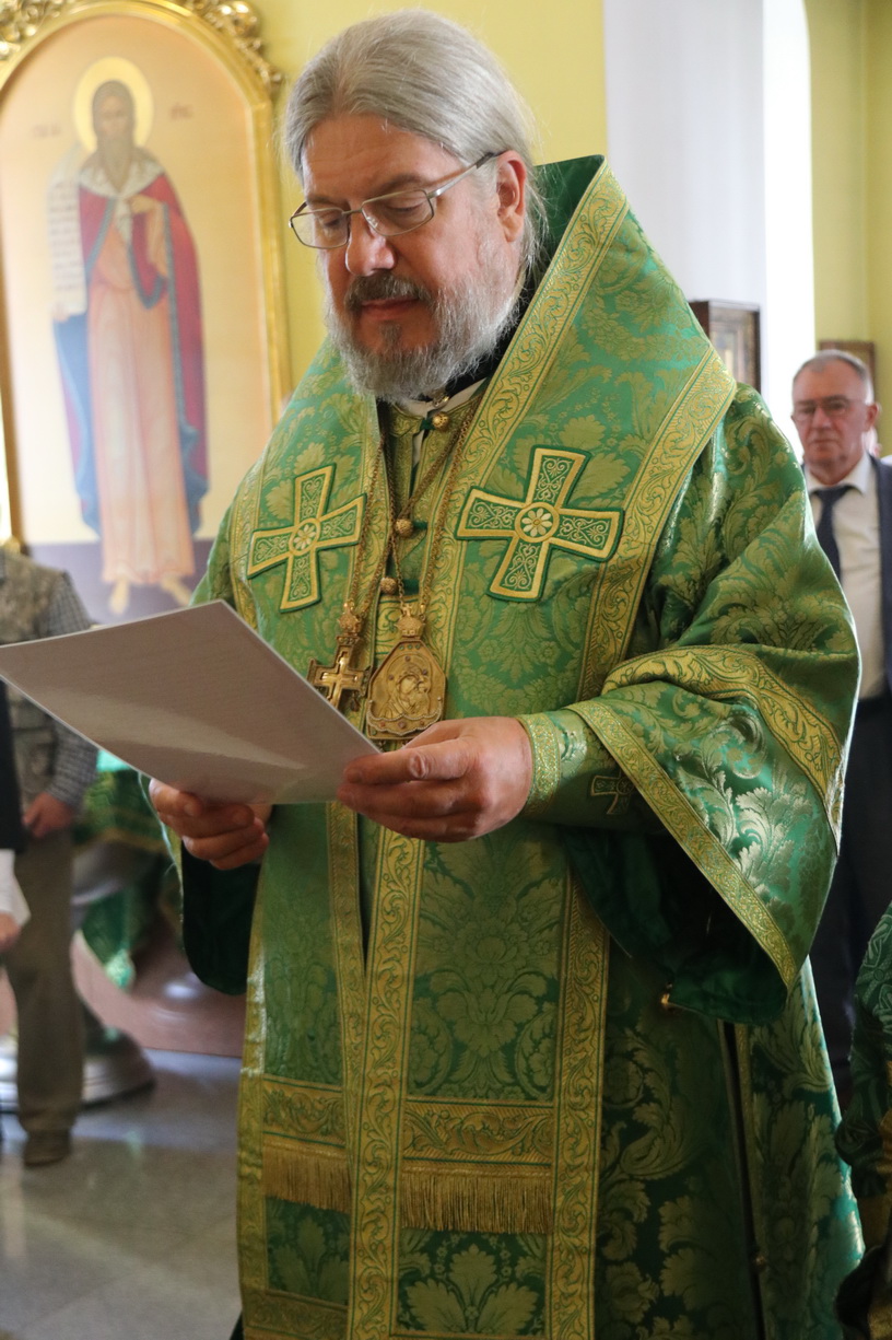По заамвонной молитве епископ Николай возглавил праздничный молебен, после чего поздравил отца-настоятеля и прихожан с праздником и обратился ко всем присутствующим с проповедью, в которой в частности сказал: