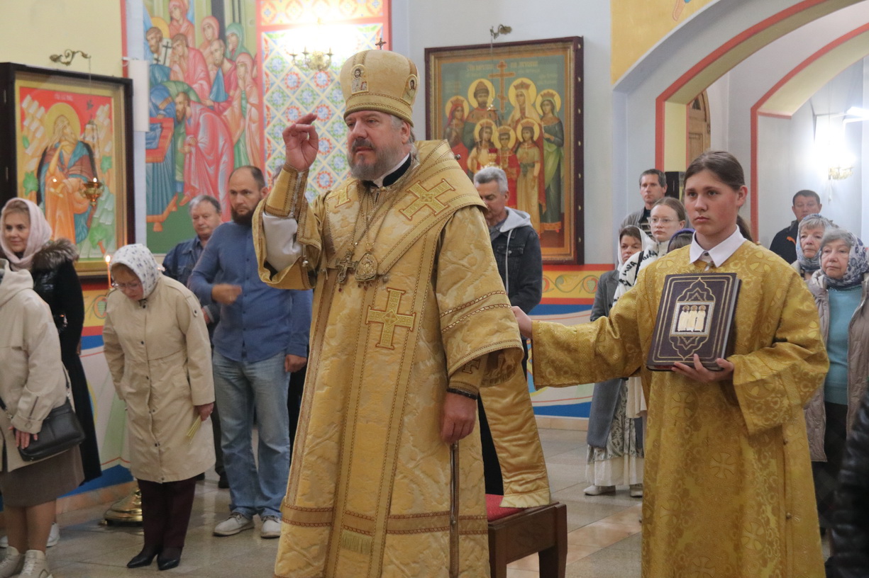 Его Преосвященству сослужили: иерей Андрей Попов; иерей Иоанн Гречишников и Илия Гречишников
