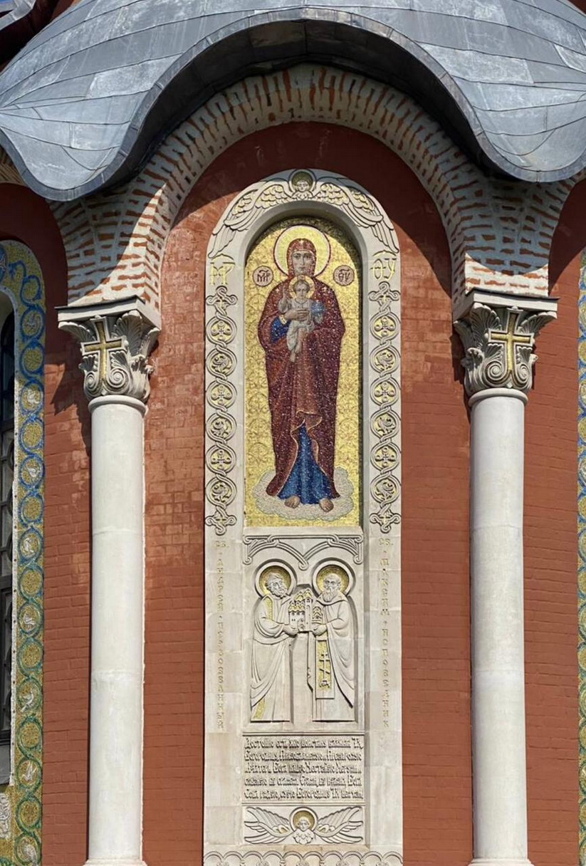 Черное (свинцовое) покрытие куполов выполнено в стиле северных храмов и монастырей. Такое покрытие служит 300-400 лет. Золоченый крест на шлемовидном куполе часовни рядом с храмом — точная копия креста на Успенском соборе во Владимире. Главный колокол звонницы весит около 5 тонн.