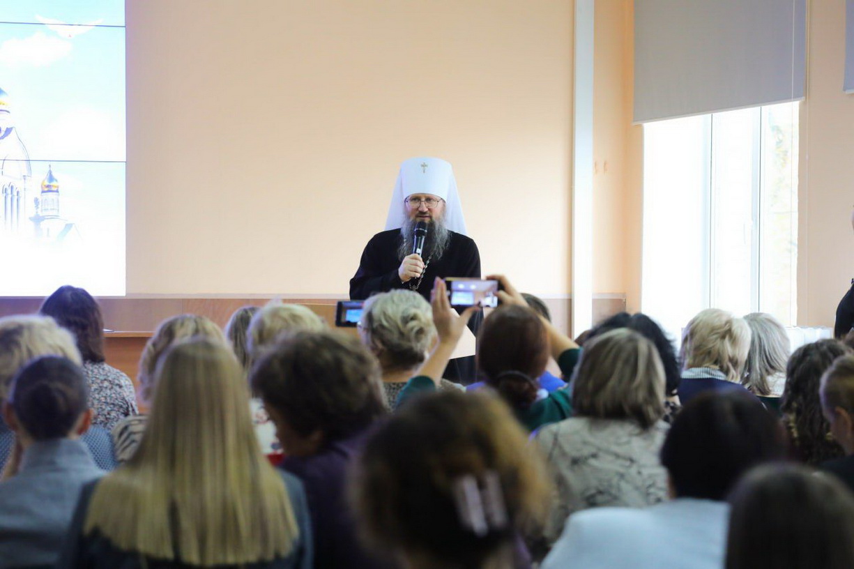 - По учению Православной Церкви, самое красивое творение на земле — это душа человеческая, соединенная с Божией благодатью. И над этой красотой, конечно, нужно много трудиться. Господь создал нашу душу, но мы должны еще много вложить труда, чтобы она стала богоподобной. И к этому сотворчеству особенно призваны педагоги. Они также ответственны за души вверенных им детей. И тут, конечно, своими силами не обойтись, поэтому и на сегодняшние труды, и на всю вашу деятельность мы просим у Господа благословения, чтобы вы взращивали души хороших, добрых людей.