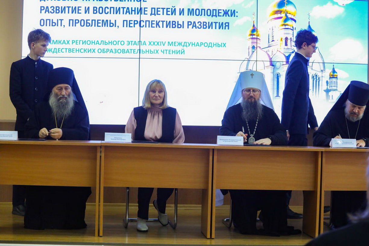 Особым моментом конференции стало подписание четырехстороннего соглашения о сотрудничестве между министерством образования Приморского края и Владивостокской, Арсеньевской, Находкинской епархиями. Свои подписи на договоре поставили владыка Павел, владыка Николай, владыка Гурий и Эльвира Шамонова. Это соглашение знаменует новый этап взаимодействия государства и Церкви в области воспитания подрастающего поколения.