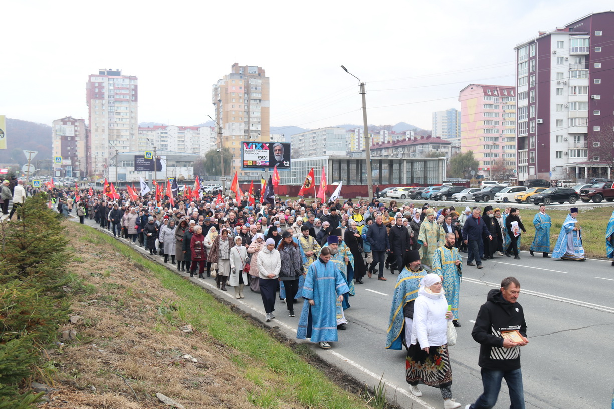 В молитвенном шествии во главе с Владыкой Николаем, епископом Находкинским и Преображенским, приняли участие представители духовенства Находкинской епархии, администрации и думы Находкинского городского округа, ЗАТО г. Фокино и Большого Камня, общественных оранизаций, горожане и гости Находки.
