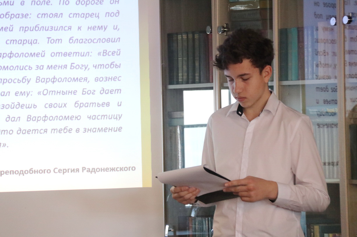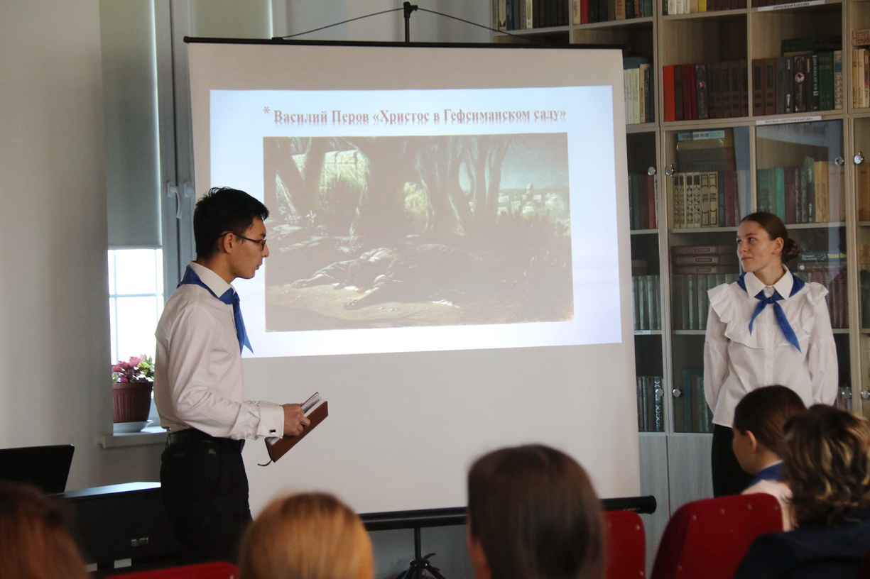 Ребята старших классов школ города расскаазывали о картинах В.Поленова «Христос и грешница», А.Иванова «Явление Христа народу», Н.Крамского «Христос в пустыне», М.Нестерова «Видение отроку Варфоломею» и других. Читали отрывки из Евангелия, на сюжет которых были написаны картины.