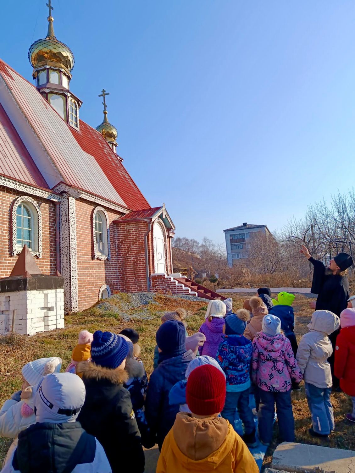 23 ноября 2025 года, прошла ознакомительная экскурсия для воспитанников детского сада №55 микрорайона Врангель Находкинского городского округа. Иеродиакон Филарет (Каширский) встретил малышей, провел по территории храма, познакомил с внутренним и внешним устройством храма Божьего. Поговорили о красоте и гармонии созданного Господом мира, и Божьей искре, заложенной в каждом человеке — разуме и совести.