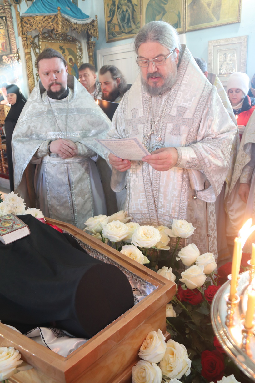 По окончании Литургии епископ Николай возглавил чин отпевания иеромонаха Порфирия. Отец Порфирий отошел ко Господу 14 декабря 2025 года, на 66-ом году жизни.