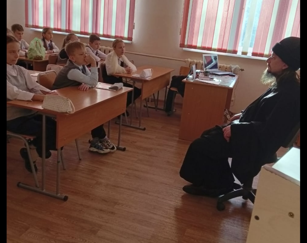 В декабре 2025 года иеродиакон Филарет (Каширский) провел занятие в школе №19 «Выбор» мкр. Врангель.