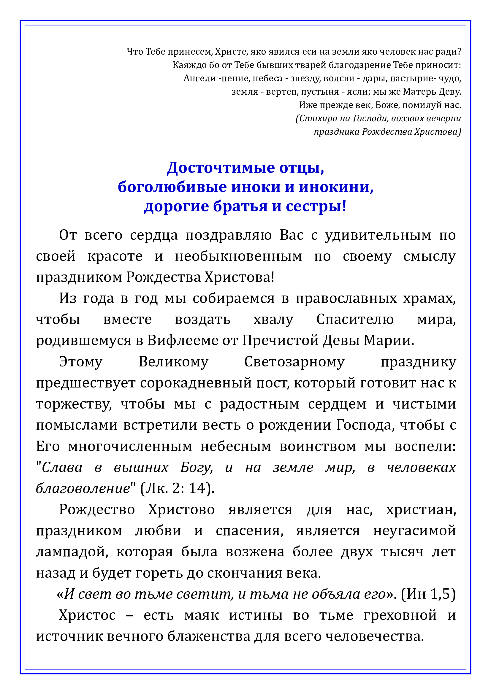 6.01.2025г.Рождественское послание епископа Находкинского и Преображенского Николая.