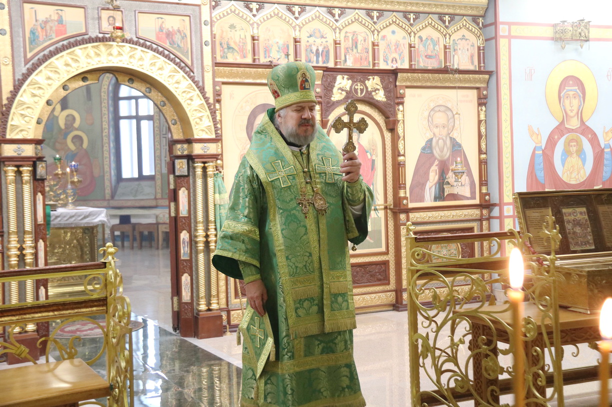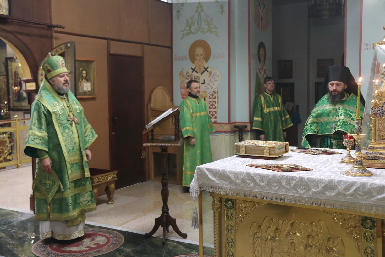 Его Преосвященству сослужили: иерей Андрей Попов и иеромонах Ермоген (Крещенко).