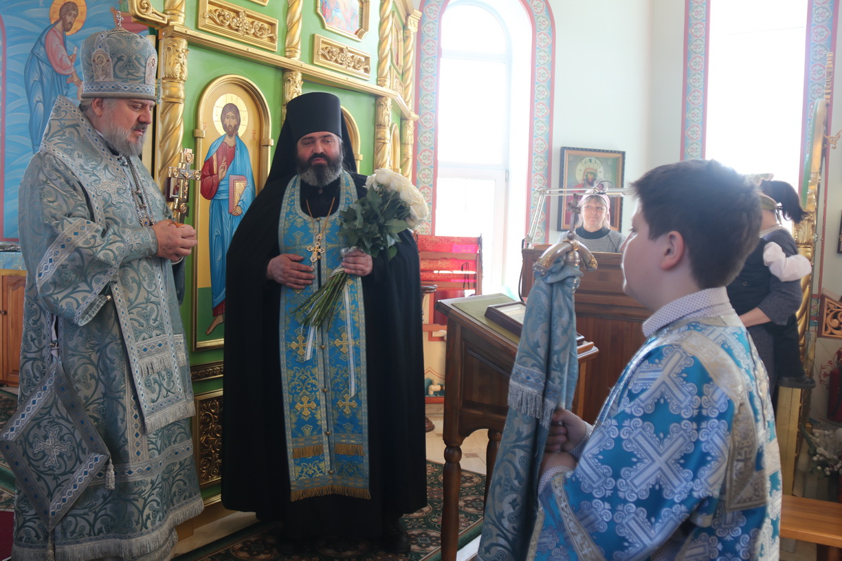 Его Преосвященству сослужили: иеромонах Силуан (Березовский), настоятель храма; иерей Андрей Шкулипа, настоятель храма прп. Сергия Радонежского с. Сергеевка и иерей Андрей Калнин благочинный Казанского Кафедрального собора г. Находки.