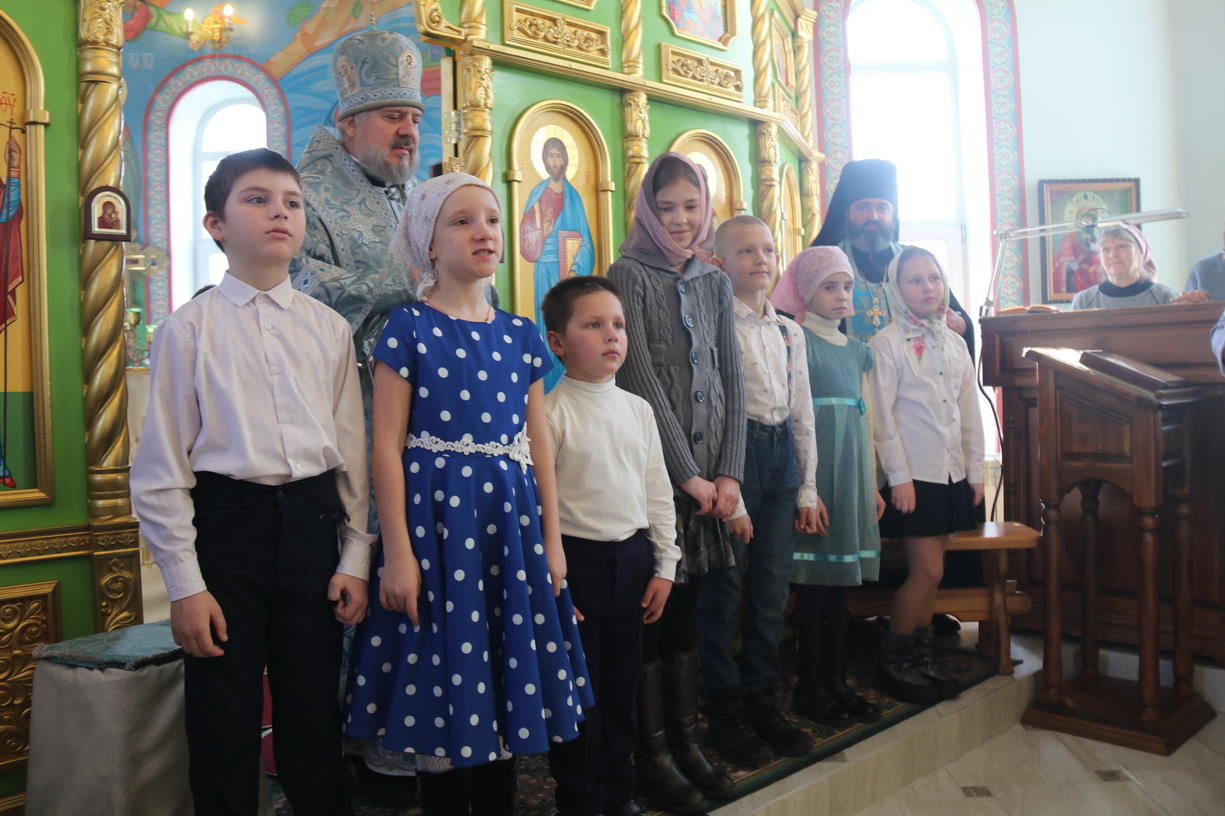 Также всех присутствуюших, стихами и песнями, с престольным праздником храма подравили воспитанники Вокресной школы.