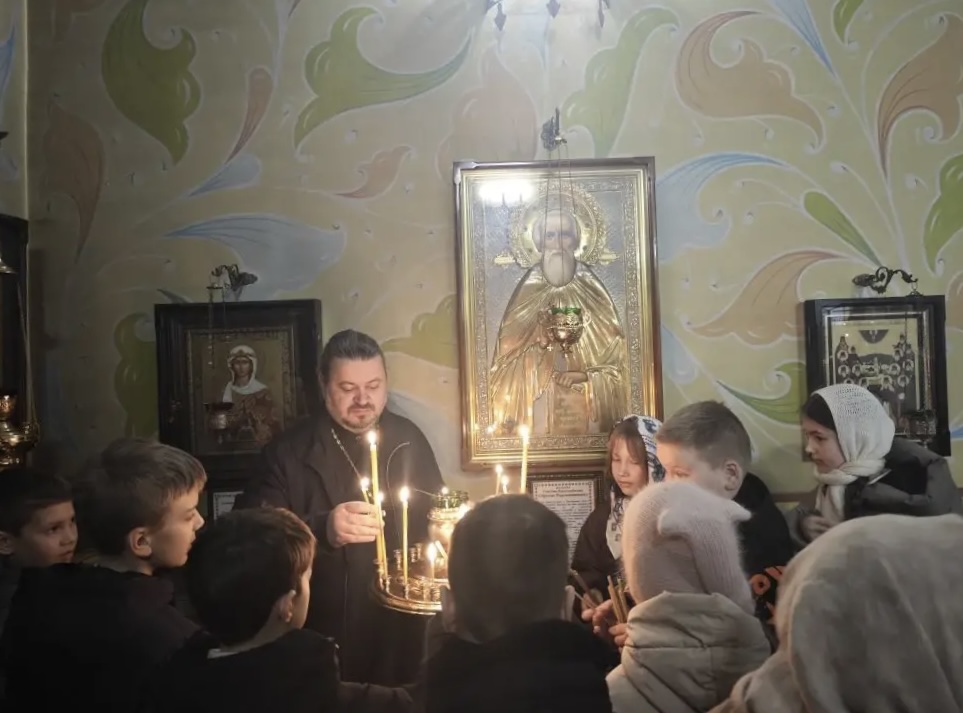 Школьники познакомились с устройством и внутренним убранством Храма. Храм делится на три части: притвор, центральная часть и алтарь. Иконостас разделяет алтарь от остальной части Храма. Священник рассказал об иконе и ее значении, о мощах святых и символическом значении свечи как малой жертве Богу. Дети поставили свечи за здоровье своих родных и близких людей.