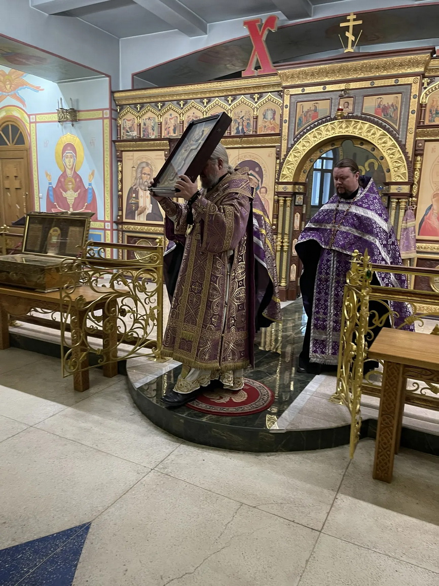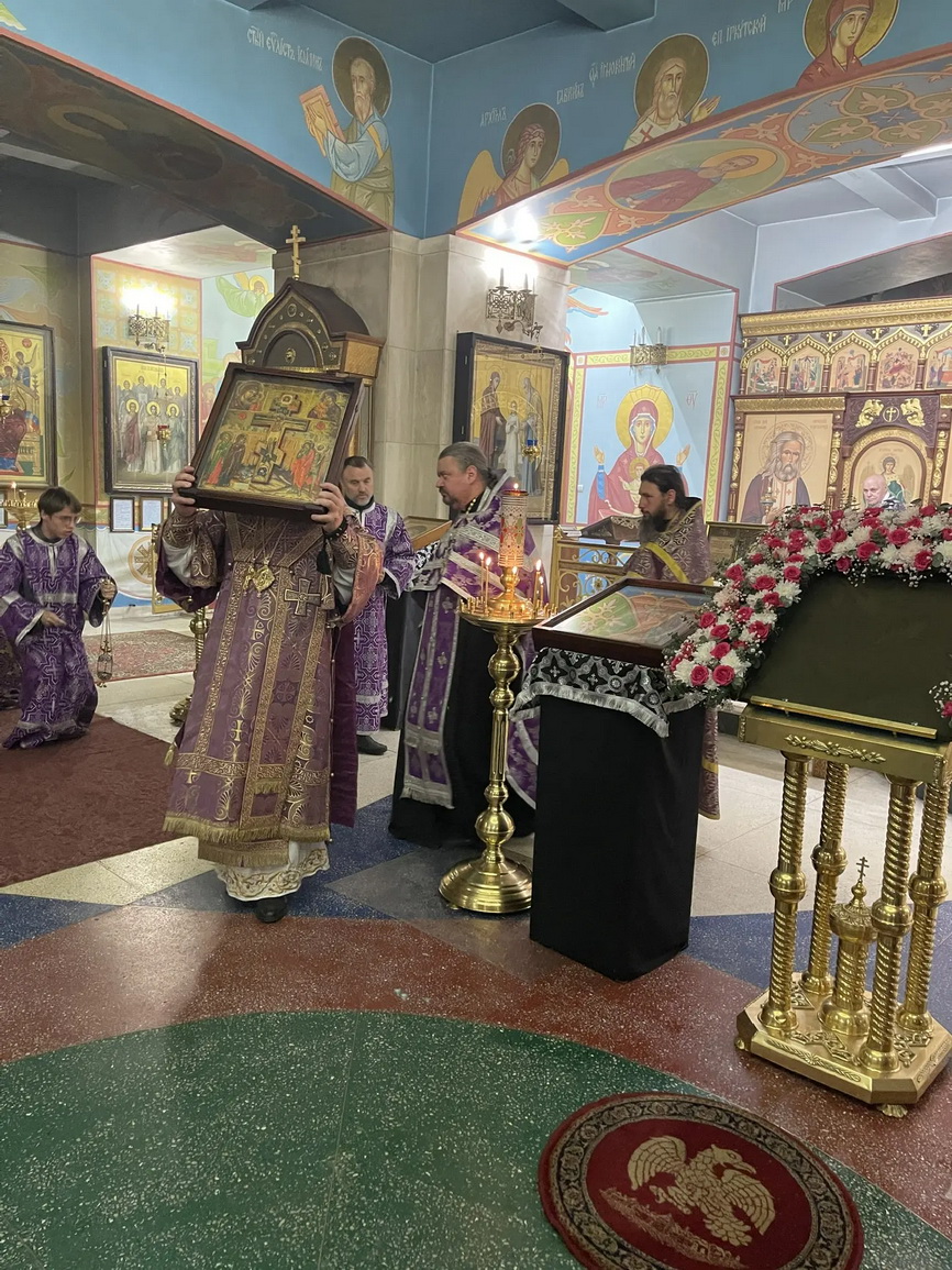 14.03.2026г.В канун Крестопоклонной недели епископ Николай возглавил всенощное бдение с чином выноса Креста в Казанском соборе г. Находки.