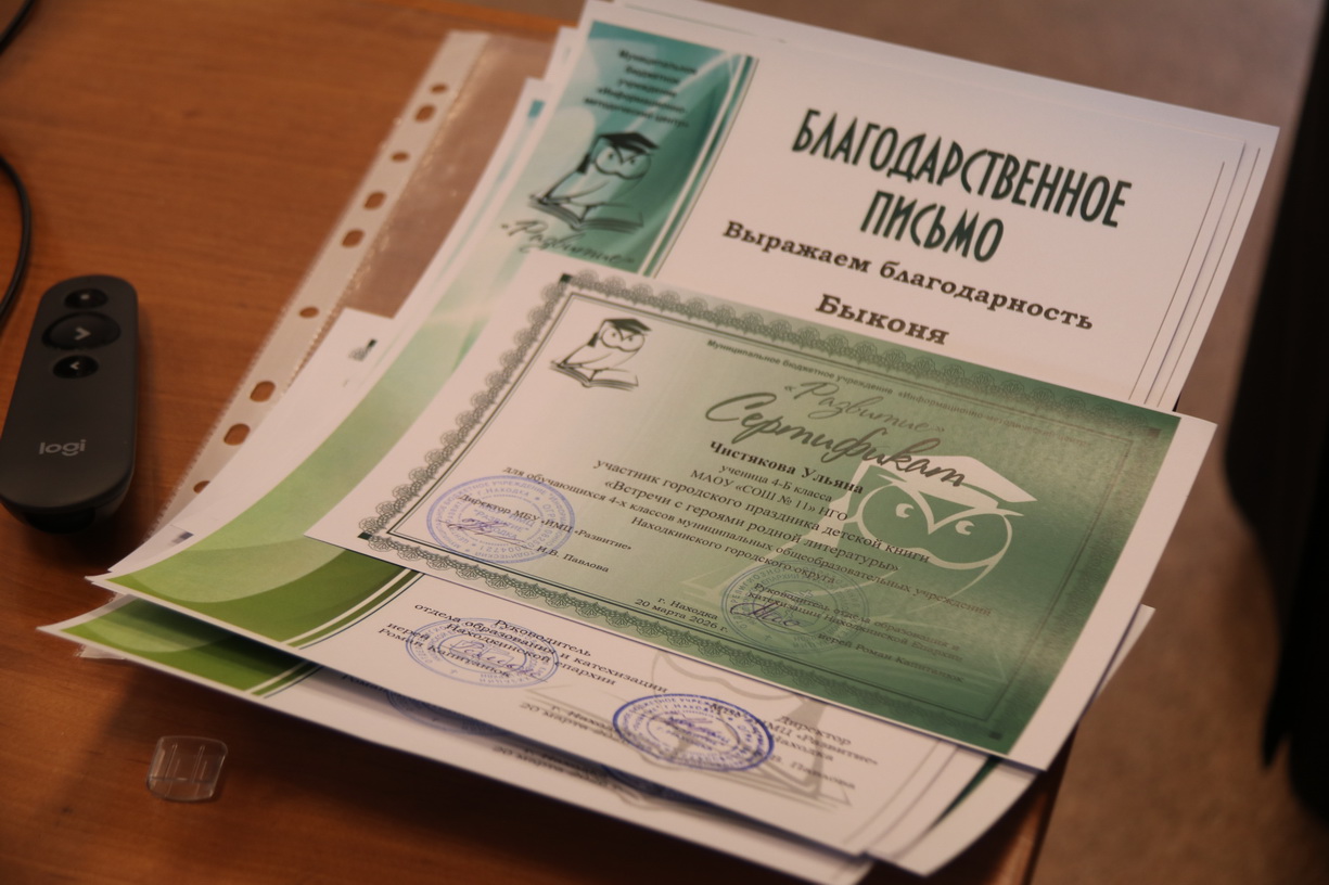Находкинской епархии. Он наградил ребят и учителей сертификатами участников и благодарственными письмами. Также