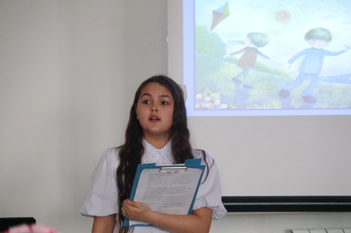 В этом году ребята представили творчество русских писателей и поэтов XIX-XXвв.: Н.А. Некрасова, А.Н. Майкова, А.Н. Плещееева, И.З. Сурикова, И.А. Бунина, С.А. Есенина, К.Г. Паустовского, А.П. Платонова.