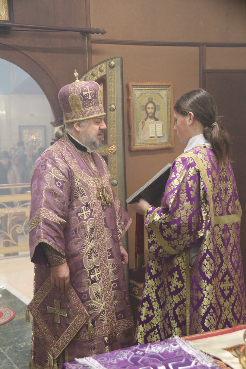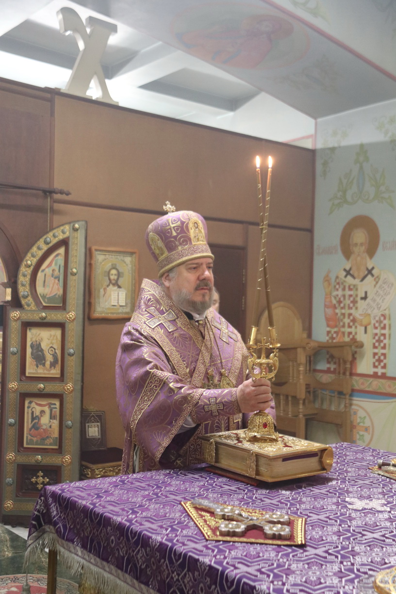 Его Преосвященству сослужили: иерей Андрей Калнин, иерей Виталий Шаркеев и иеромонах Ермоген (Крещенко).