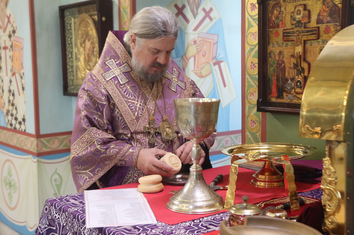 Его Преосвященству сослужили: иерей Андрей Калнин; иерей Виталий Шаркеев; иерей Андрей Попов; иеромонах Ермоген (Крещенко) и иерей Илия Гречишников.