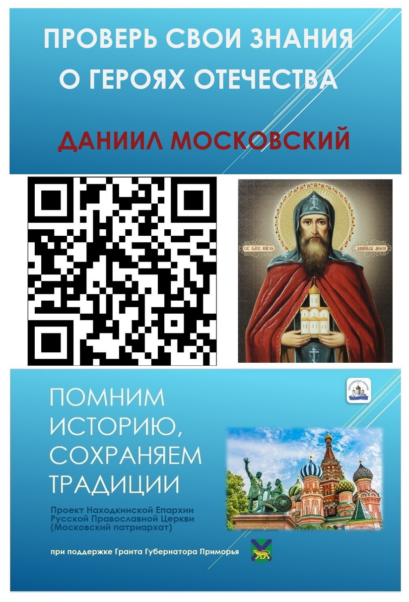 В дни школьной каникул предлагаем школьникам и родителям пройти исторические викторины о выдающихся людях нашего Отечества. Александр Невский, Александр Суворов, Федор Ушаков, Серафим Саровский, Даниил Московский, Иван Федоров.