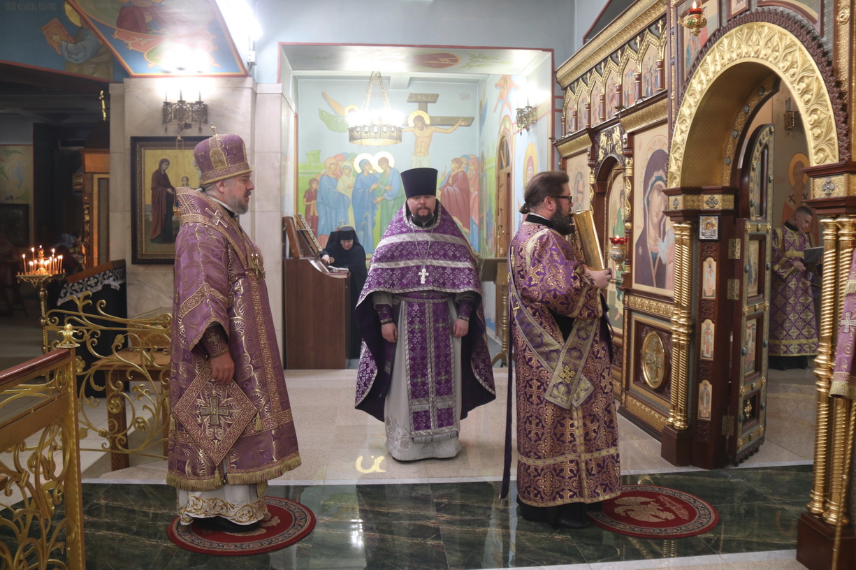 Его Преосвященству сослужили: иерей Андрей Калнин, ризничий Казанского собора; иерей Виталий Шаркеев; иерей Андрей Попов; иеромонах Ермоген (Крещенко); иерей Илия Гречишников.