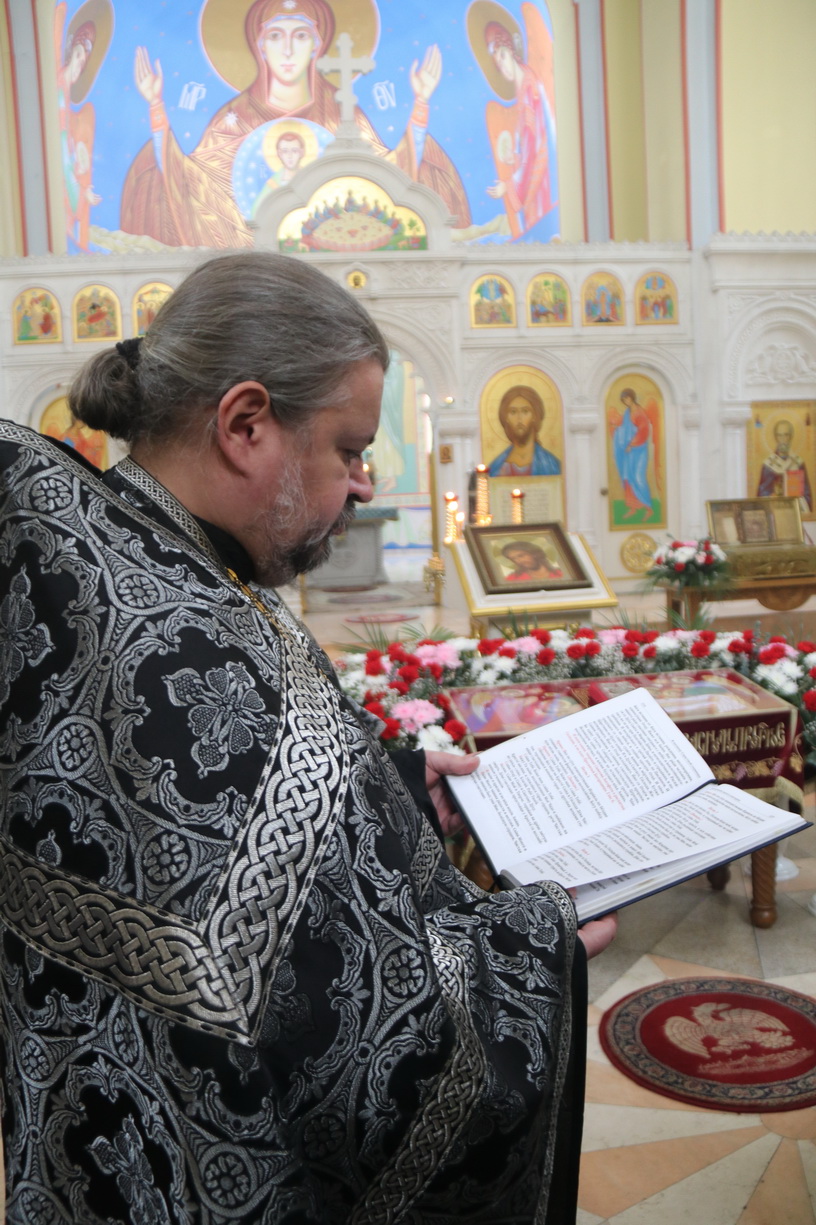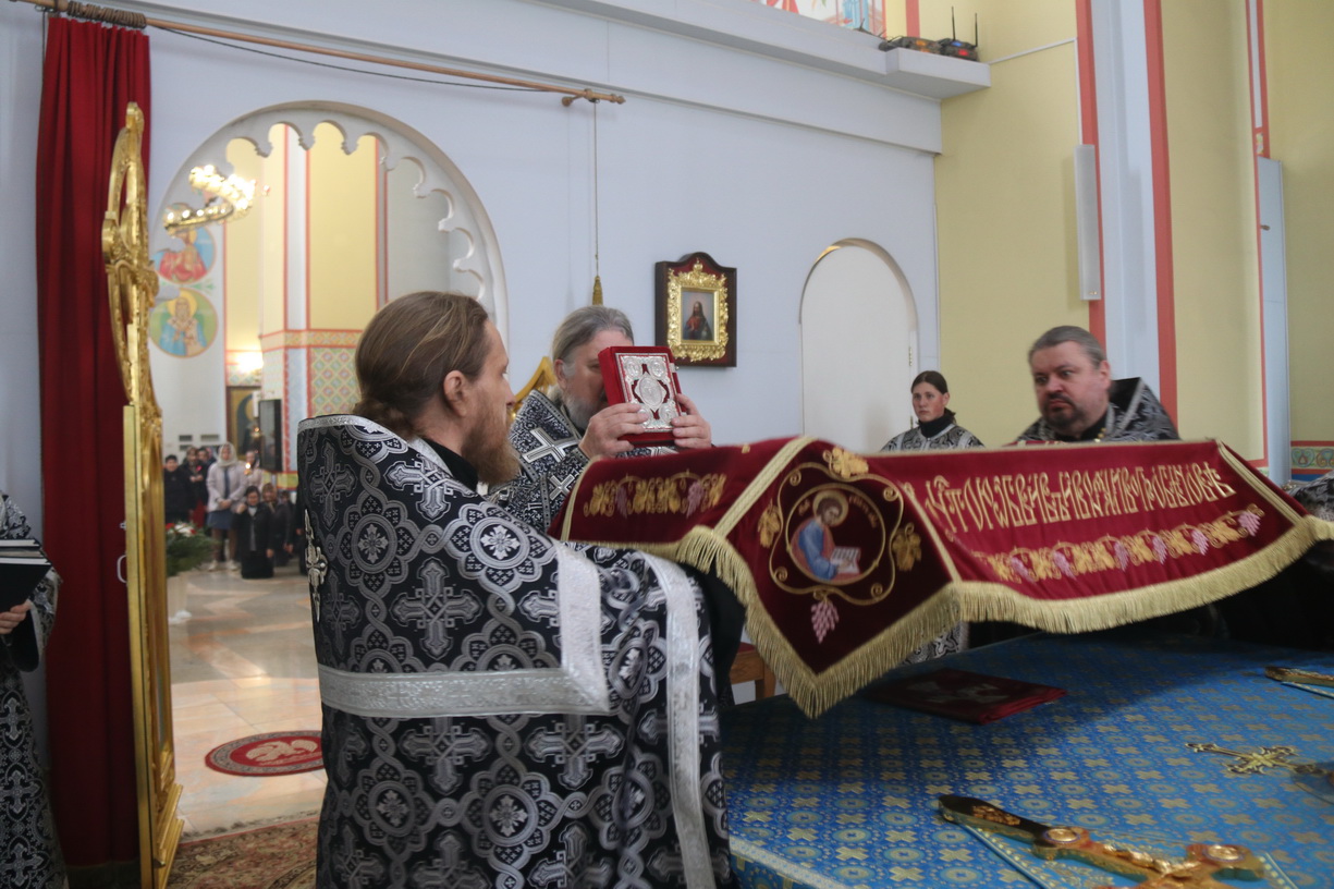 Его Преосвященству сослужили: иерей Андрей Калнин, ризничий Казанского собора; иерей Виталий Шаркеев; иерей Андрей Попов; иеромонах Ермоген (Крещенко) и иерей Илия Гречишников.