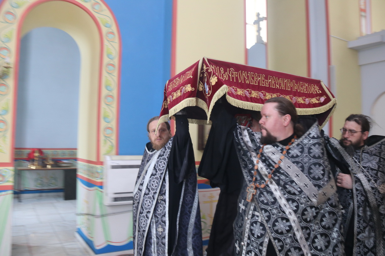 10.04.2026г.В Великую пятницу, епископ Находкинский и Преображенский Николай совершил вечерню с выносом Плащаницы Спасителя в Казанском Кафедральном соборе г. Находки.