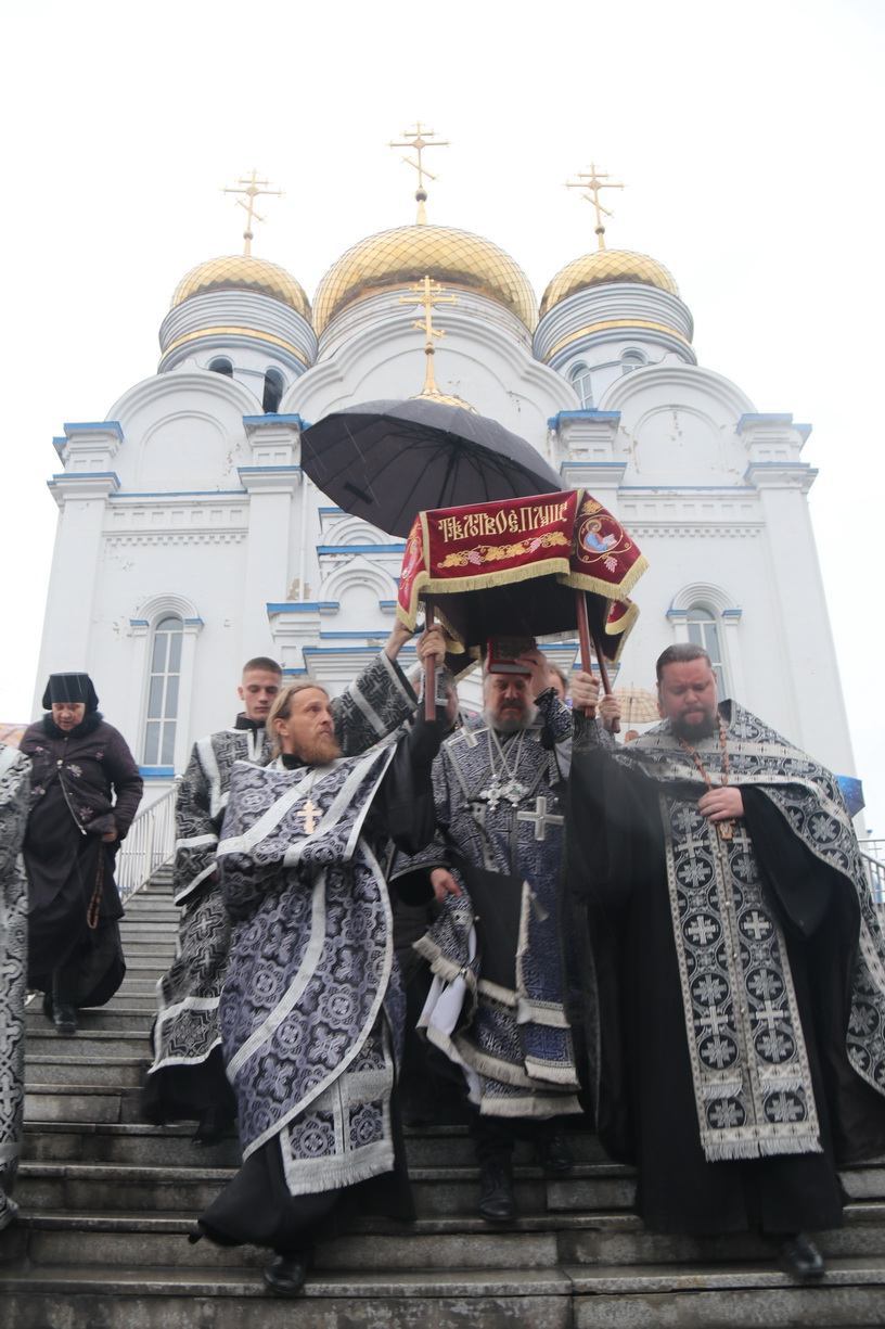 После великого славословия с пением погребального «Святый Боже» был совершен крестный ход с Плащаницей вокруг храма.