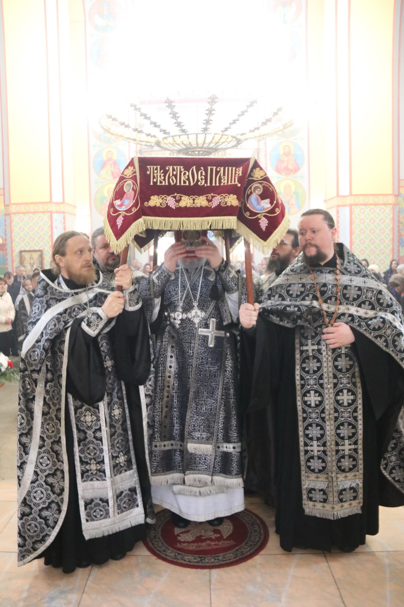После того, как Святая Плащаница была внесена в храм и положена на гробницу, Его Преосвященство обратился к присутствующим с архиерейским словом: