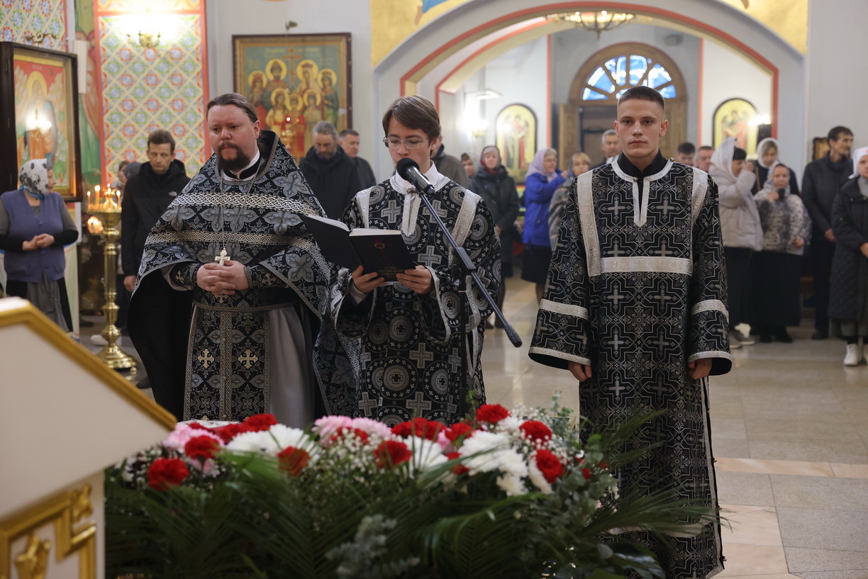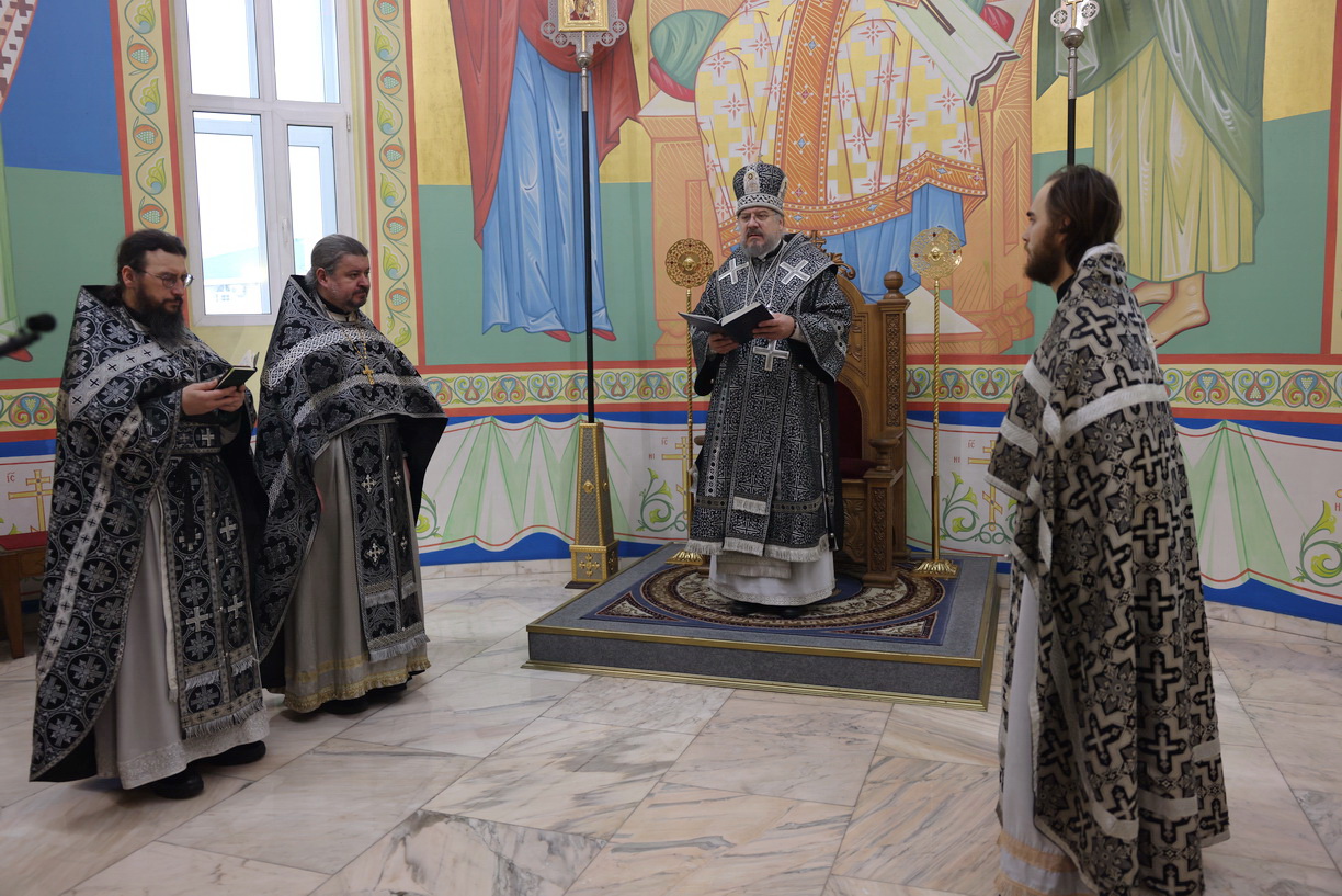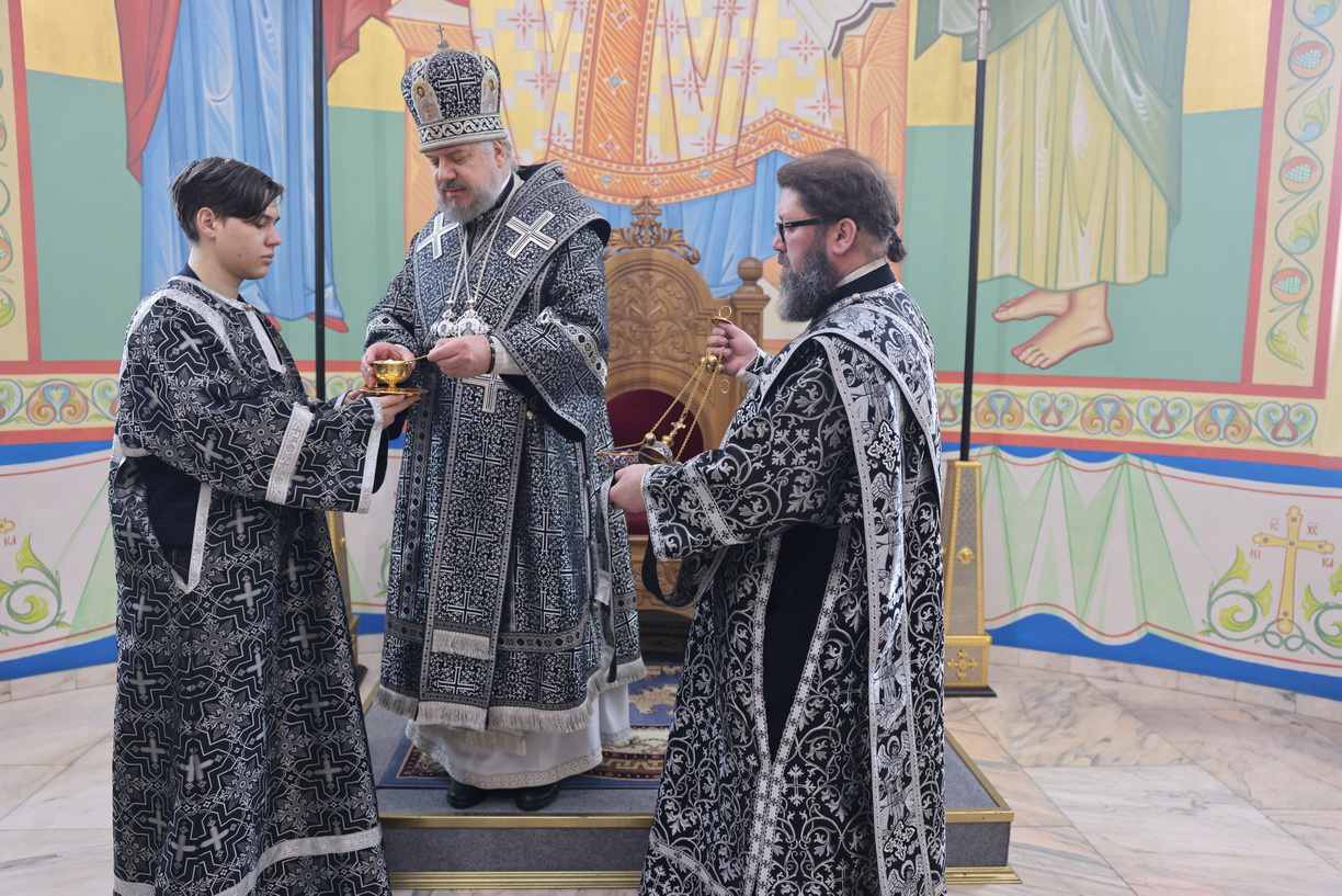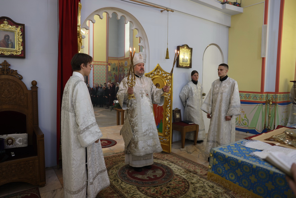 Его Преосвященству сослужили: иерей Андрей Калнин, ризничий Казанского собора; иерей Виталий Шаркеев; иерей Андрей Попов; иеромонах Ермоген (Крещенко) и иерей Илия Гречишников.