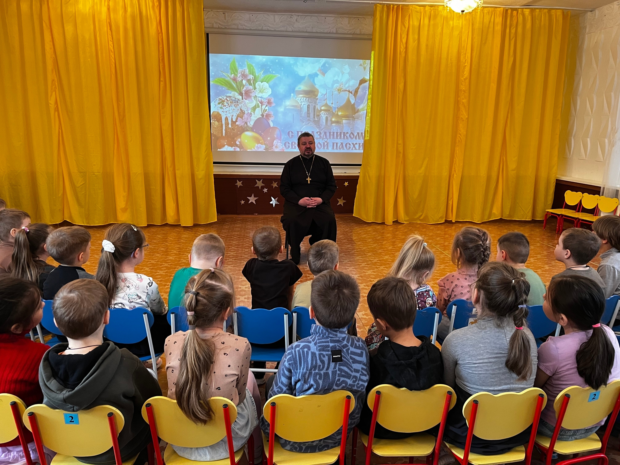 14.04.2026г.Важный разговор о главном: Пасха Христова! Священник встретился с воспитанниками детского сада.