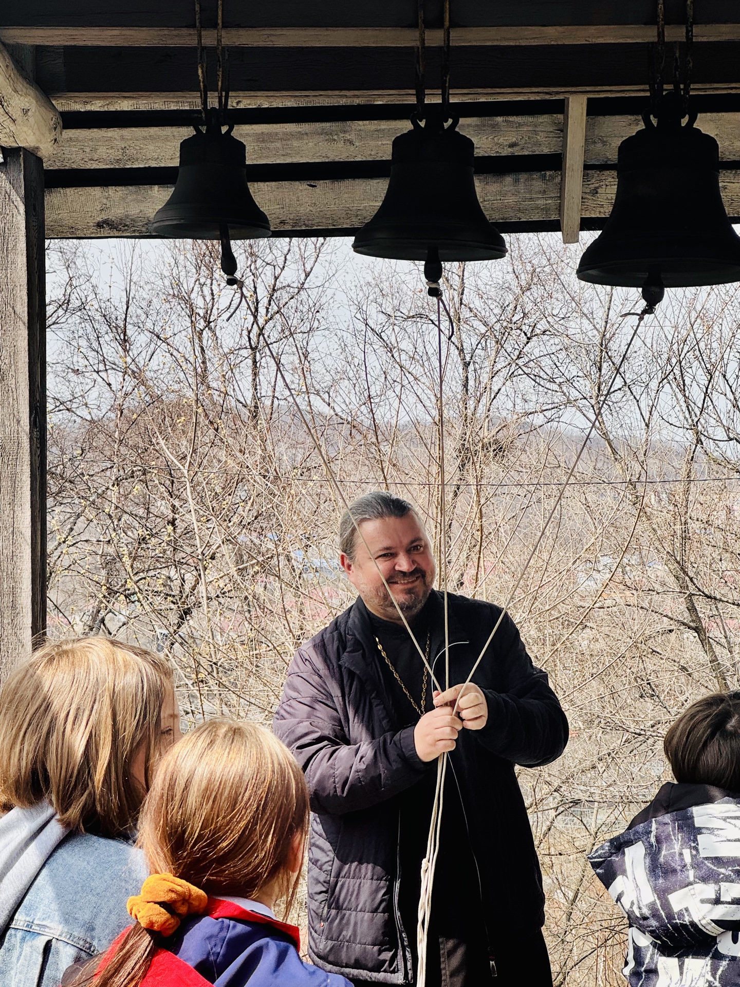 Отец Виталий продемонстрировал умение колокольного перезвона, школьники с радостью присоединялись к возможности позвонить в колокола. Насыщенная новыми знаниями и эмоциями встреча завершилась пасхальными угощениями — куличами. Впечатления от храмовой экскурсии запомнятся ребятам надолго.