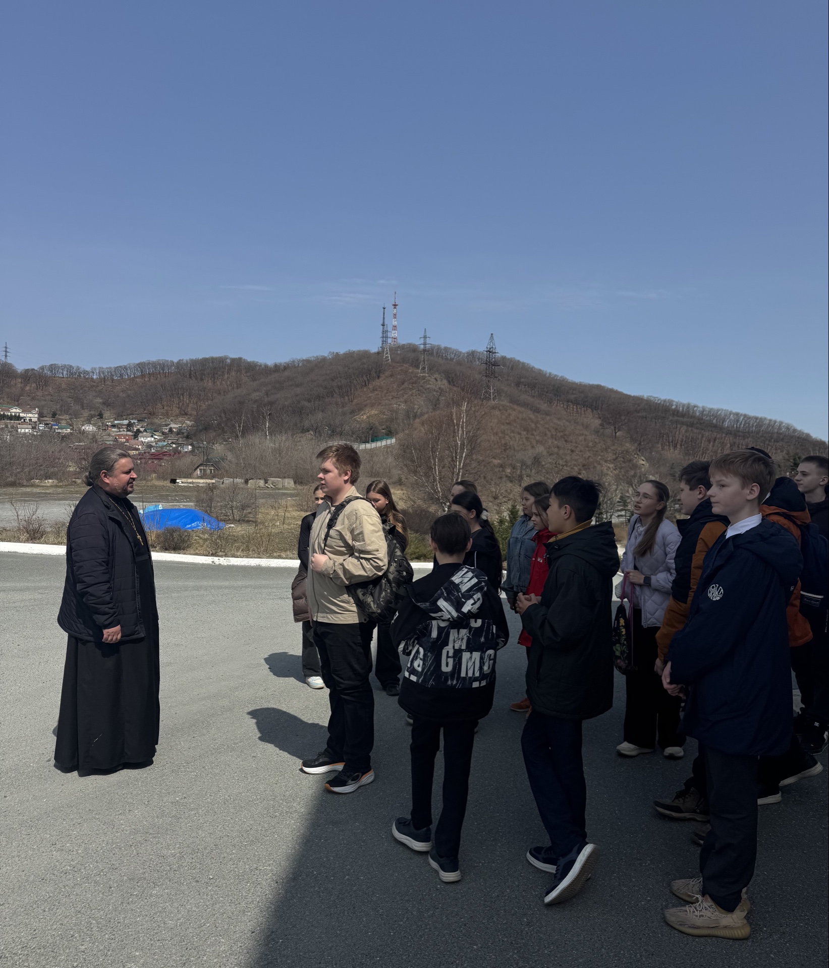 Руководитель миссионерского отдела Находкинской епархии иерей Виталий Шаркеев провел экскурсию для учащихся 7-го класса средней общеобразовательной школы № 4 г. Находки.