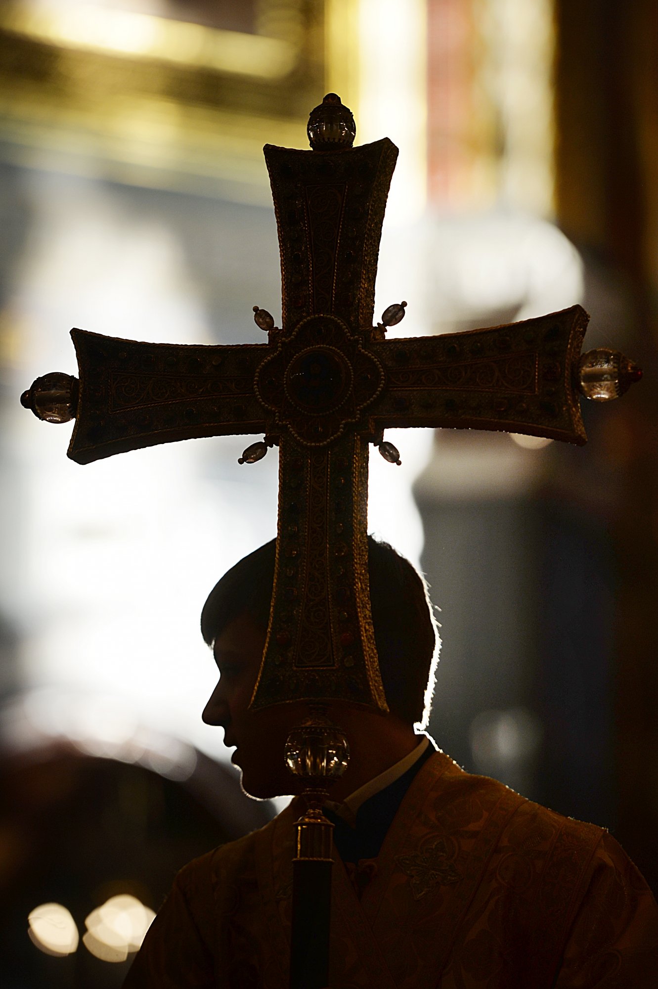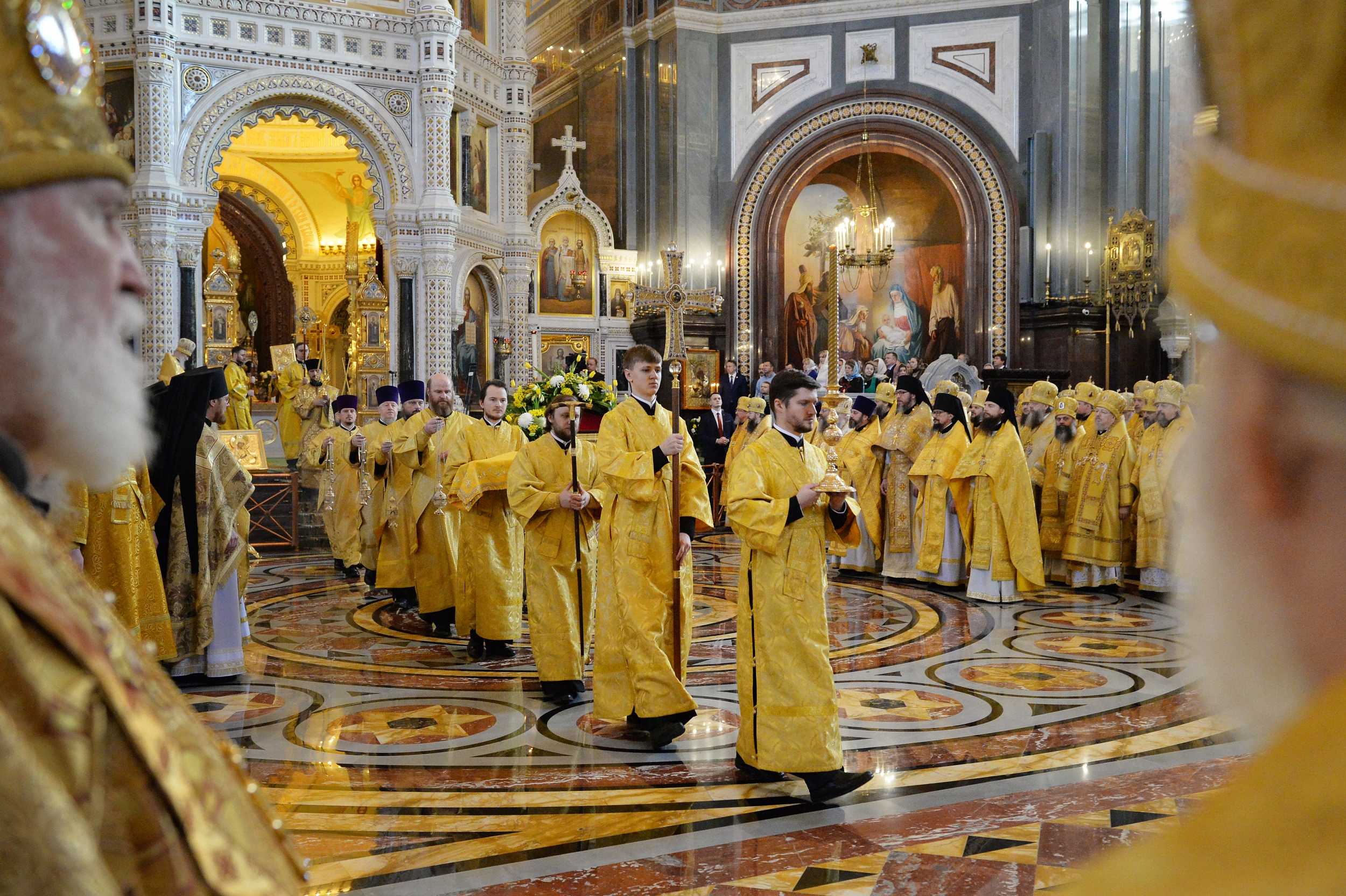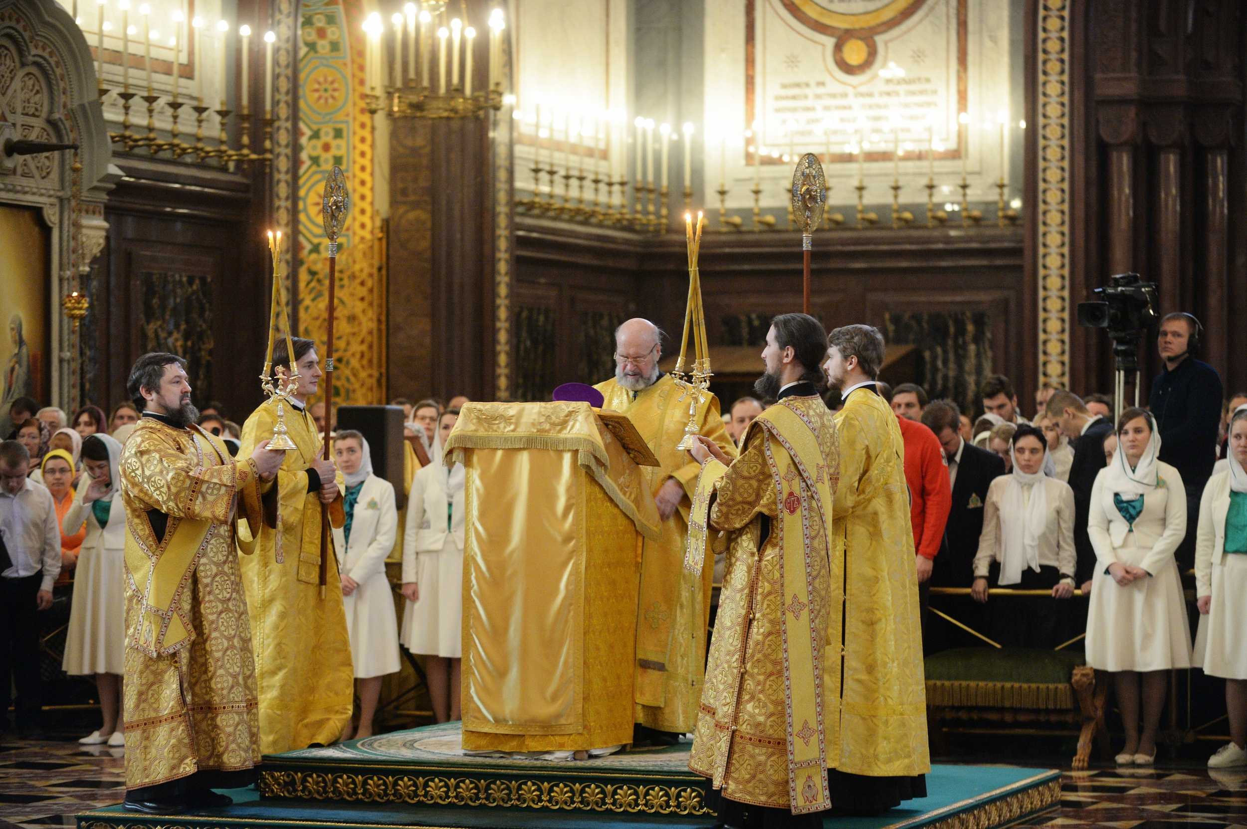 На телеканалах «Союз» и «Спас» шла прямая трансляция торжественного богослужения.