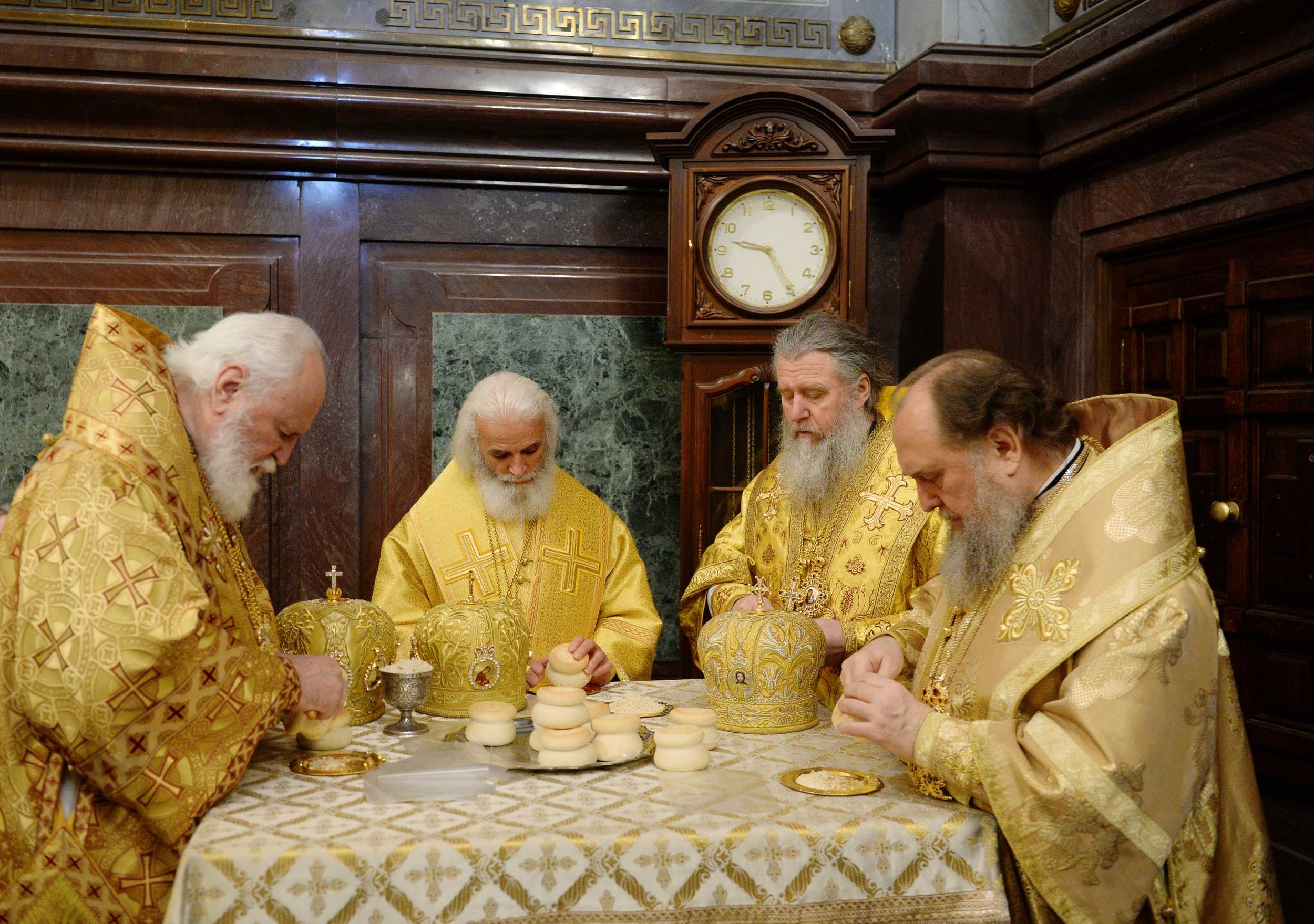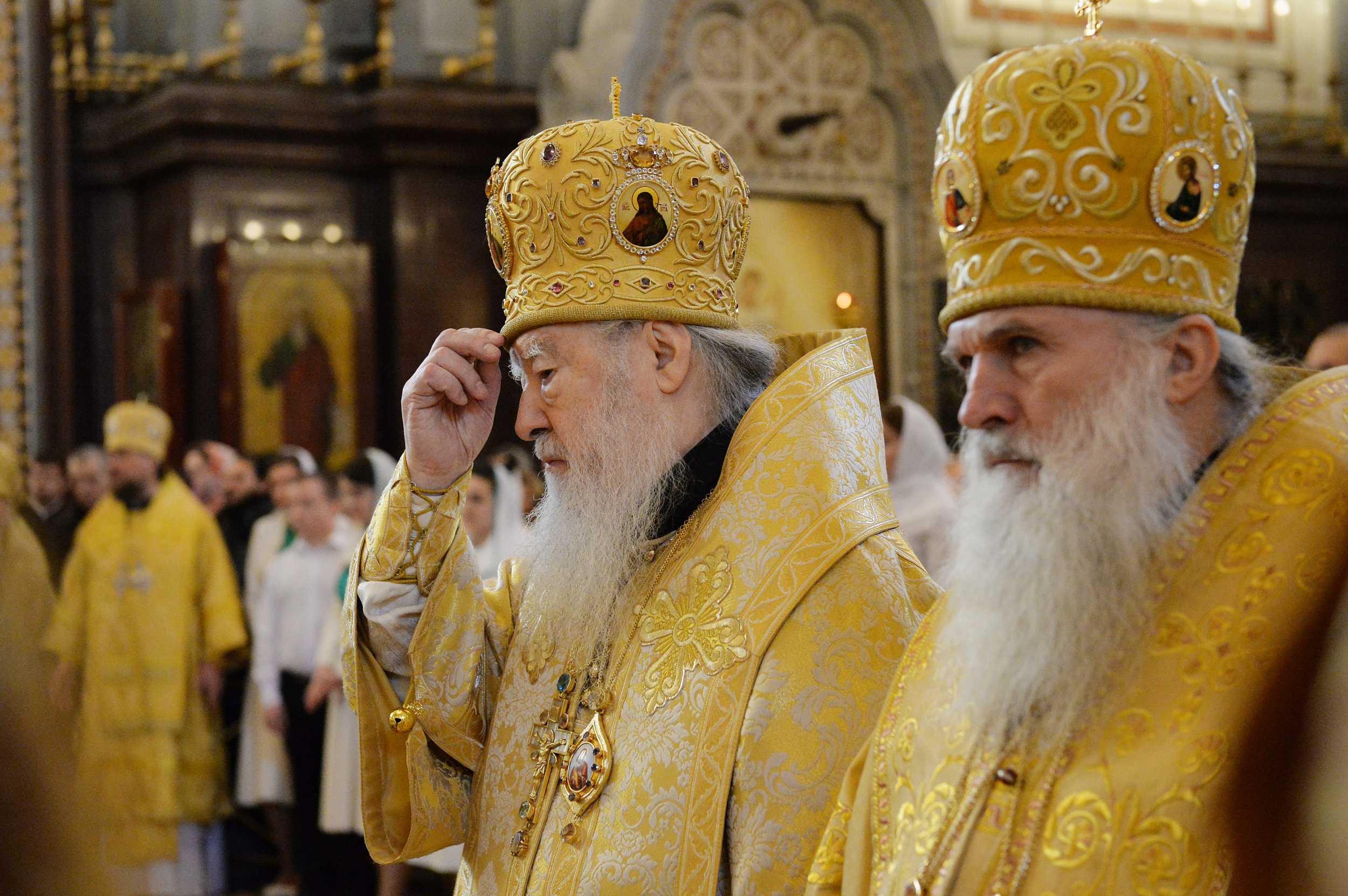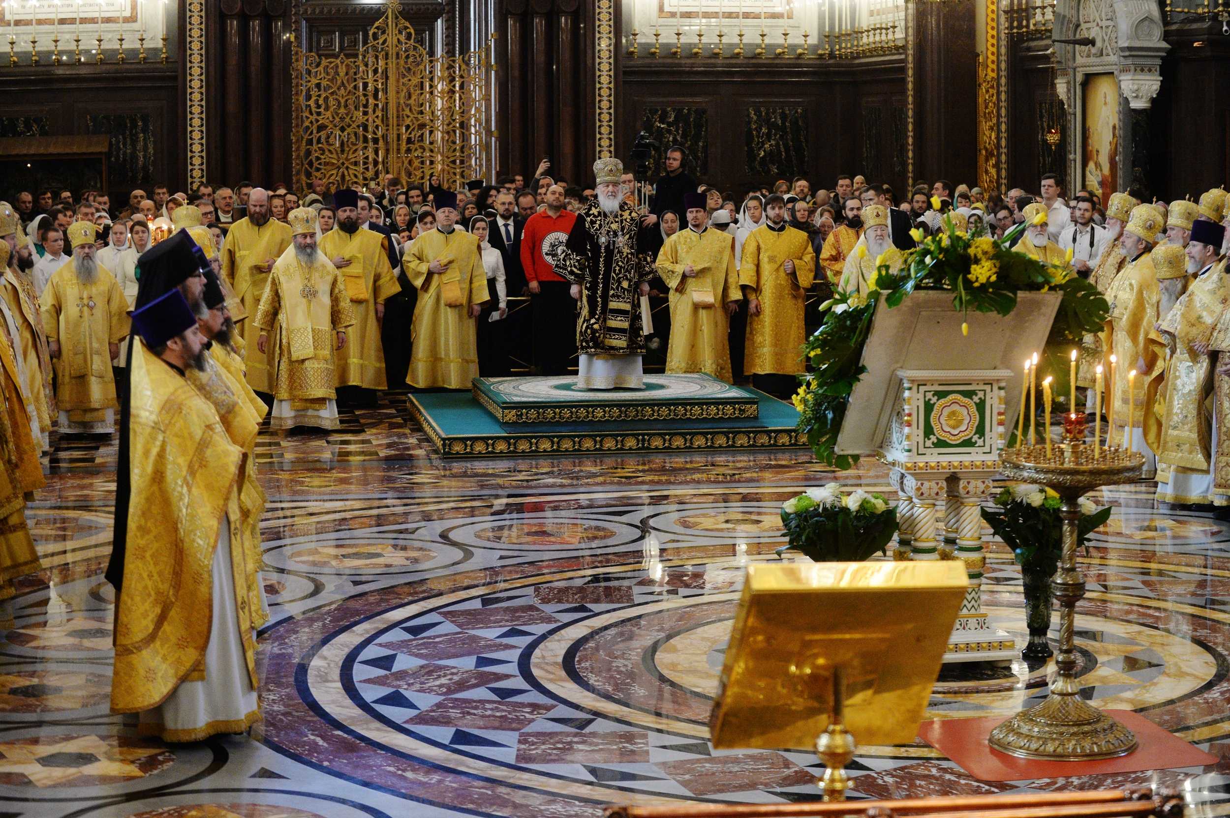 Предстоятелю Русской Православной Церкви сослужили: Блаженнейший митрополит Киевский и всея Украины Онуфрий; митрополит Крутицкий и Коломенский Ювеналий, Патриарший наместник Московской епархии; митрополит Астанайский и Казахстанский Александр, глава Митрополичьего округа в Республике Казахстан; митрополит Ташкентский и Узбекистанский Викентий, глава Среднеазиатского митрополичьего округа; митрополит Санкт-Петербургский и Ладожский Варсонофий, управляющий делами Московской Патриархии; митрополит Минский и Заславский Павел, Патриарший экзарх всея Беларуси; митрополит Волоколамский Иларион, председатель Отдела внешних церковных связей Московского Патриархата; митрополит Рижский и всея Латвии Александр; митрополит Чебоксарский и Чувашский Варнава; митрополит Пермский и Кунгурский Мефодий; митрополит Калужский и Боровский Климент, председатель Издательского Совета Русской Православной Церкви; митрополит Воронежский и Лискинский Сергий; митрополит Омский и Таврический Владимир; митрополит Ярославский и Ростовский Пантелеимон; митрополит Новгородский и Старорусский Лев; митрополит Тверской и Кашинский Виктор; митрополит Симбирский и Новоспасский Анастасий; митрополит Орловский и Болховский Антоний; митрополит Самарский и Тольяттинский Сергий; митрополит Истринский Арсений, первый викарий Патриарха Московского и всея Руси по г. Москве; митрополит Владимирский и Суздальский Евлогий; митрополит Тернопольский и Кременецкий Сергий; митрополит Петрозаводский и Карельский Константин; митрополит Виленский и Литовский Иннокентий; митрополит Курский и Рыльский Герман; митрополит Белгородский и Старооскольский Иоанн, председатель Синодального миссионерского отдела; митрополит Красноярский и Ачинский Пантелеимон; митрополит Йошкар-Олинский и Марийский Иоанн; митрополит Екатеринбургский и Верхотурский Кирилл; митрополит Аргентинский и Южноамериканский Игнатий; митрополит Иваново-Вознесенский и Вичугский Иосиф; митрополит Ростовский и Новочеркасский Меркурий, председатель Синодального отдела религиозного образования и катехизации; митрополит Казанский и Татарстанский Феофан; митрополит Брянский и Севский Александр; митрополит Архангельский и Холмогорский Даниил; митрополит Тамбовский и Рассказовский Феодосий; митрополит Нижегородский и Арзамасский Георгий; митрополит Саратовский и Вольский Лонгин; митрополит Рязанский и Михайловский Марк, председатель Финансово-хозяйственного управления Московского Патриархата; митрополит Улан-Удэнский и Бурятский Савватий; митрополит Кемеровский и Прокопьевский Аристарх; митрополит Кировоградский и Новомиргородский Иоасаф; митрополит Челябинский и Миасский Никодим; митрополит Ставропольский и Невинномысский Кирилл, председатель Синодального комитета по взаимодействию с казачеством; митрополит Саранский и Мордовский Зиновий; митрополит Ханты-Мансийский и Сургутский Павел; митрополит Вологодский и Кирилловский Игнатий; митрополит Барнаульский и Алтайский Сергий; митрополит Астраханский и Камызякский Никон; митрополит Пензенский и Нижнеломовский Серафим; митрополит Смоленский и Дорогобужский Исидор; митрополит Костромской и Нерехтский Ферапонт; митрополит Читинский и Петровск-Забайкальский Димитрий; иерархи Русской Православной Церкви.