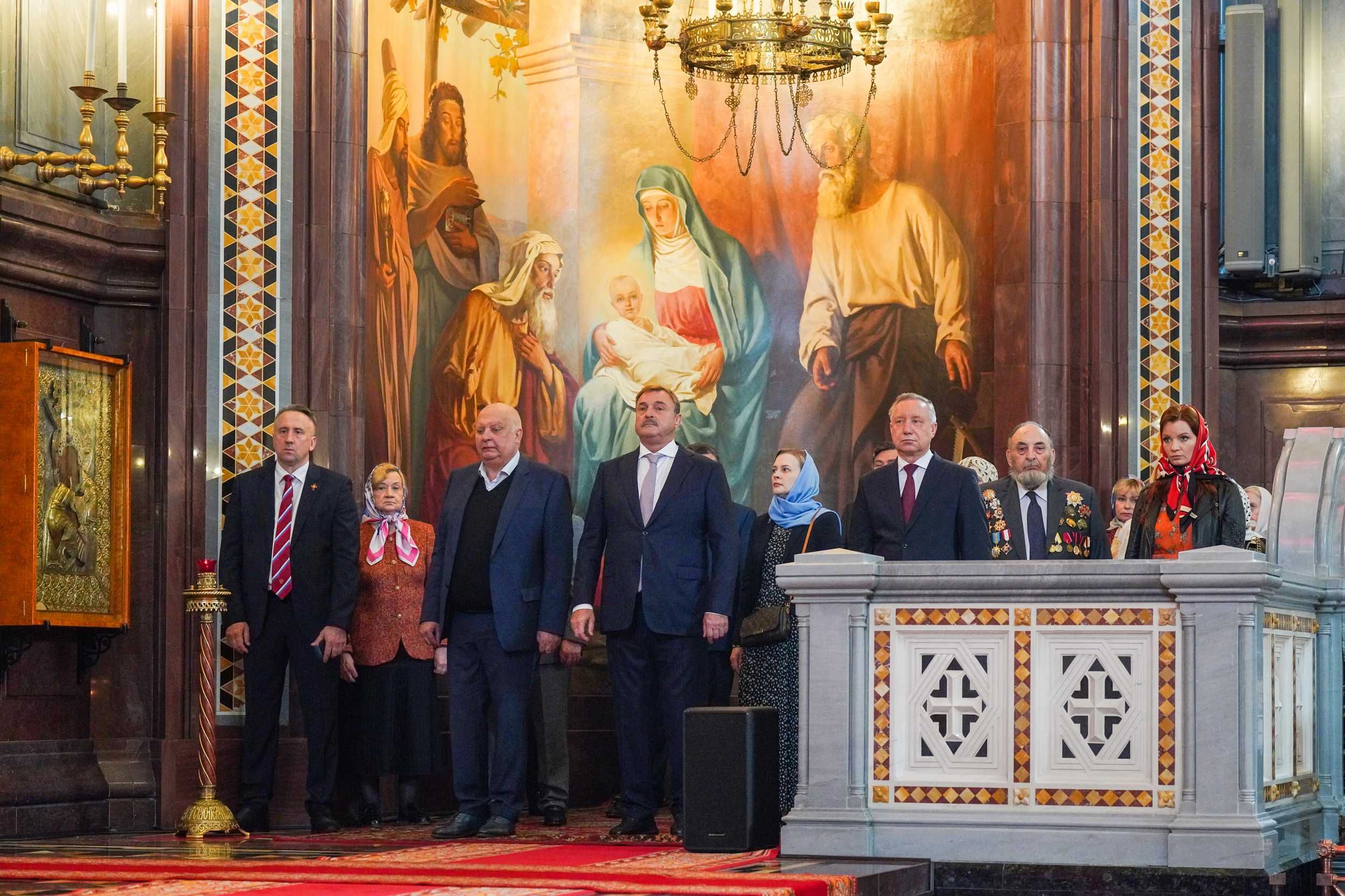 В храме присутствовали: председатель Либерально-демократической партии России, руководитель фракции ЛДПР в Государственной Думе ФС РФ, председатель Комитета Государственной Думы по международным делам Л.Э. Слуцкий; губернатор Санкт-Петербурга А.Д. Беглов; депутат Государственной Думы ФС РФ, советник мэра г. Москвы, советник Патриарха Московского и всея Руси по вопросам строительства, куратор Программы строительства православных храмов в г. Москве В.И. Ресин; заместитель министра обороны РФ Т.В. Иванов; председатель Попечительского совета фонда святителя Василия Великого, заместитель главы Всемирного русского народного собора К.В. Малофеев; вице-президент Российского союза химиков А.Г. Гурьев; председатель Наблюдательного совета Общероссийского общественного движения «Россия Православная» М.М. Иванов; президент Международного фонда духовного единства народов В.А. Алексеев.