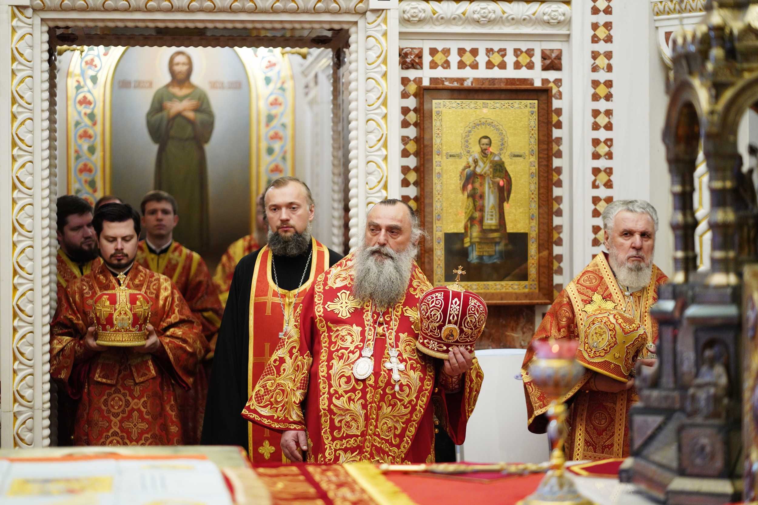 В алтаре молился архимандрит Стефан (Диспиракис), представитель Патриарха Святого Града Иерусалима и всей Палестины при Патриархе Московском и всея Руси.
