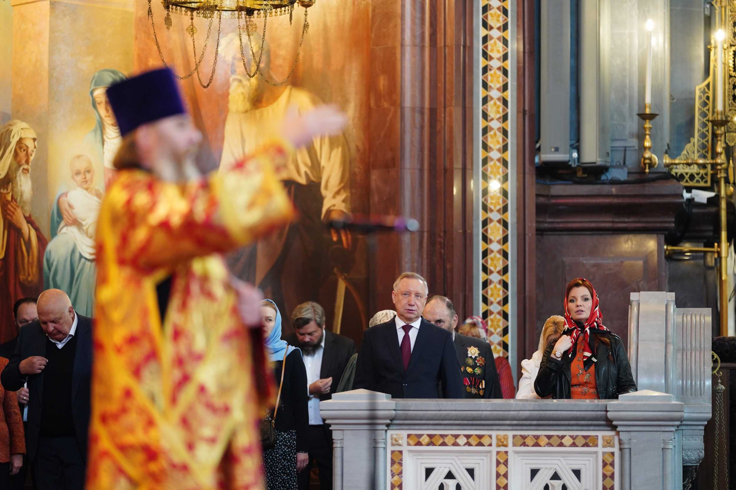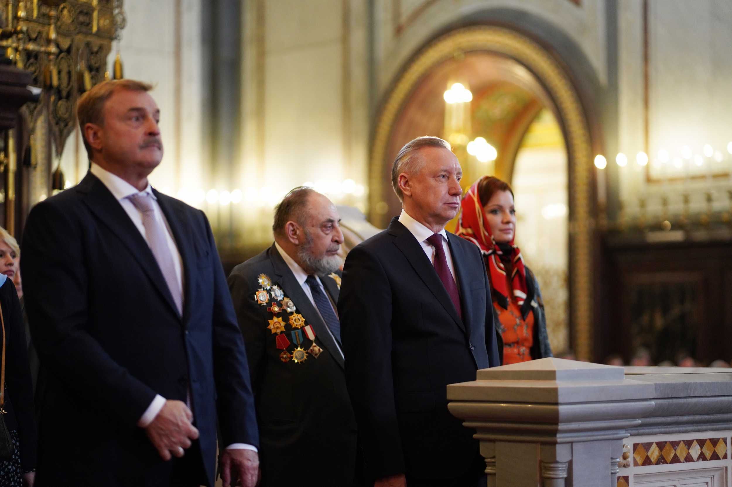 От лица Президента Российской Федерации В.В. Путина Святейшего Патриарха Кирилла поздравил губернатор Санкт-Петербурга А.Д. Беглов, зачитавший поздравление главы государства.