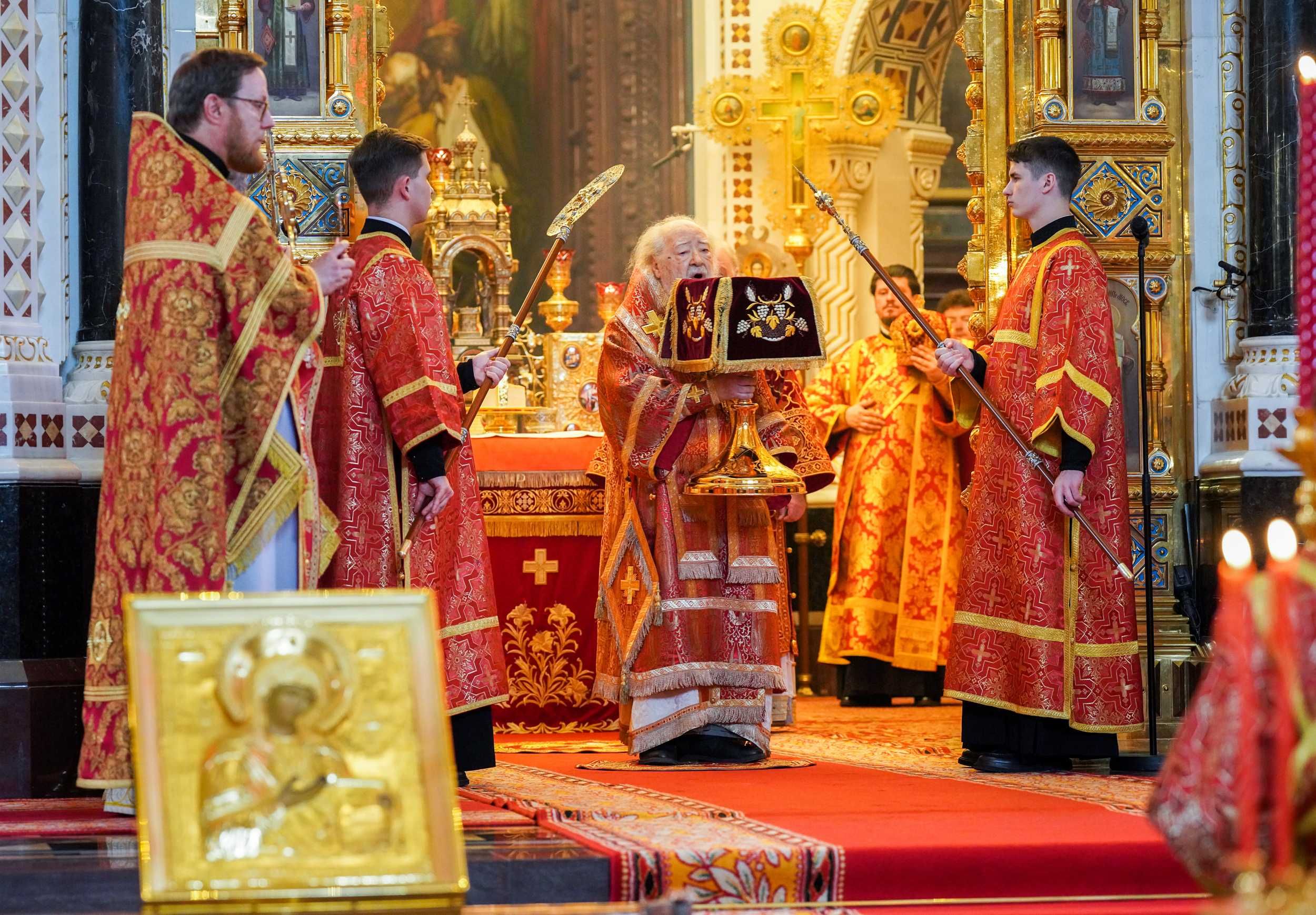 Богослужебные песнопения исполнил Патриарший хор Храма Христа Спасителя (регент — И.Б. Толкачев).