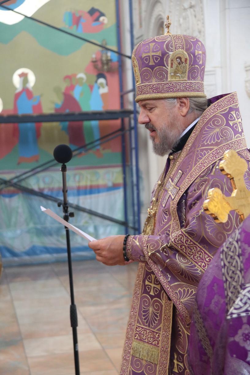 По заамвонной молитве епископ Николай, в сослужении духовенства собора, совершил праздничное славление Животворящему Кресту и обратился к присутствующим с архиерейским словом.По окончании богослужения был организован сбор средств для мирных жителей Донбасса, Новороссии и обстреливаемого приграничья.