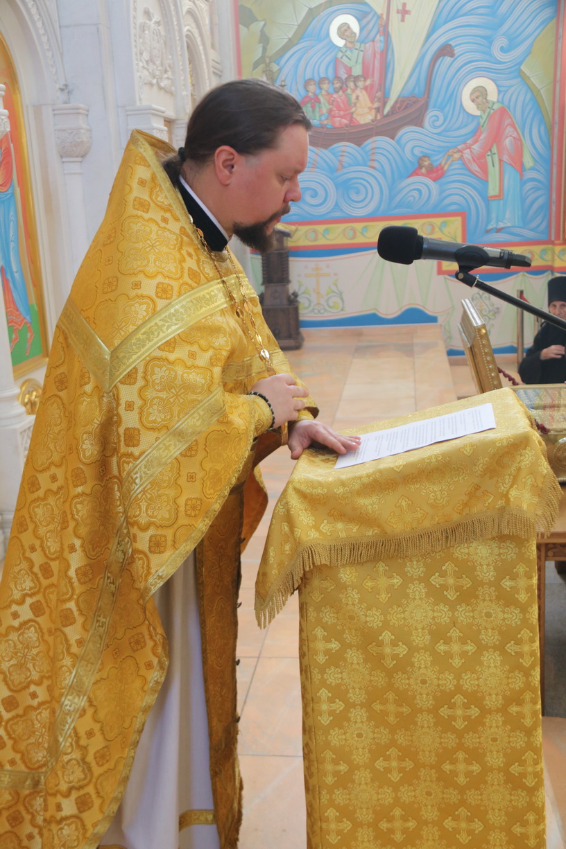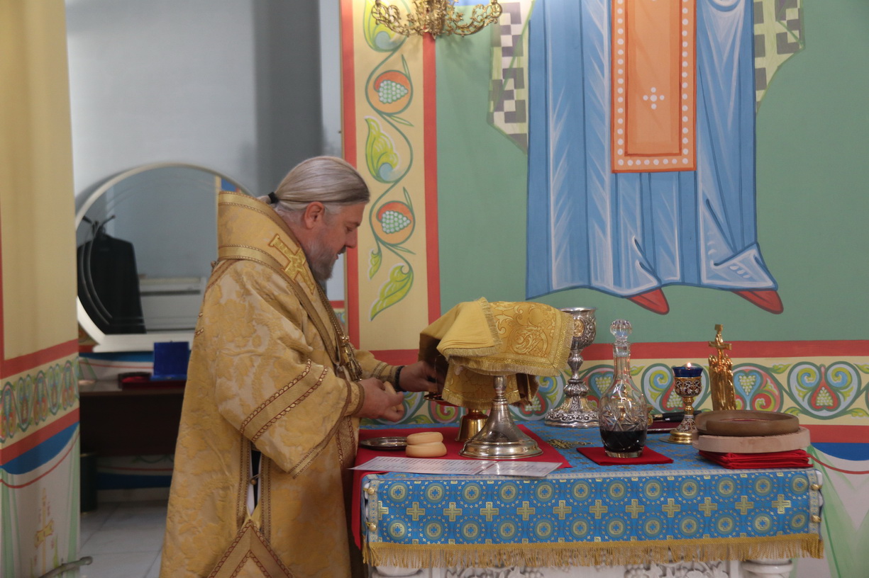 Его Преосвященству сослужили: иерей Андрей Попов; иерей Иоанн Гречишников и Илия Гречишников