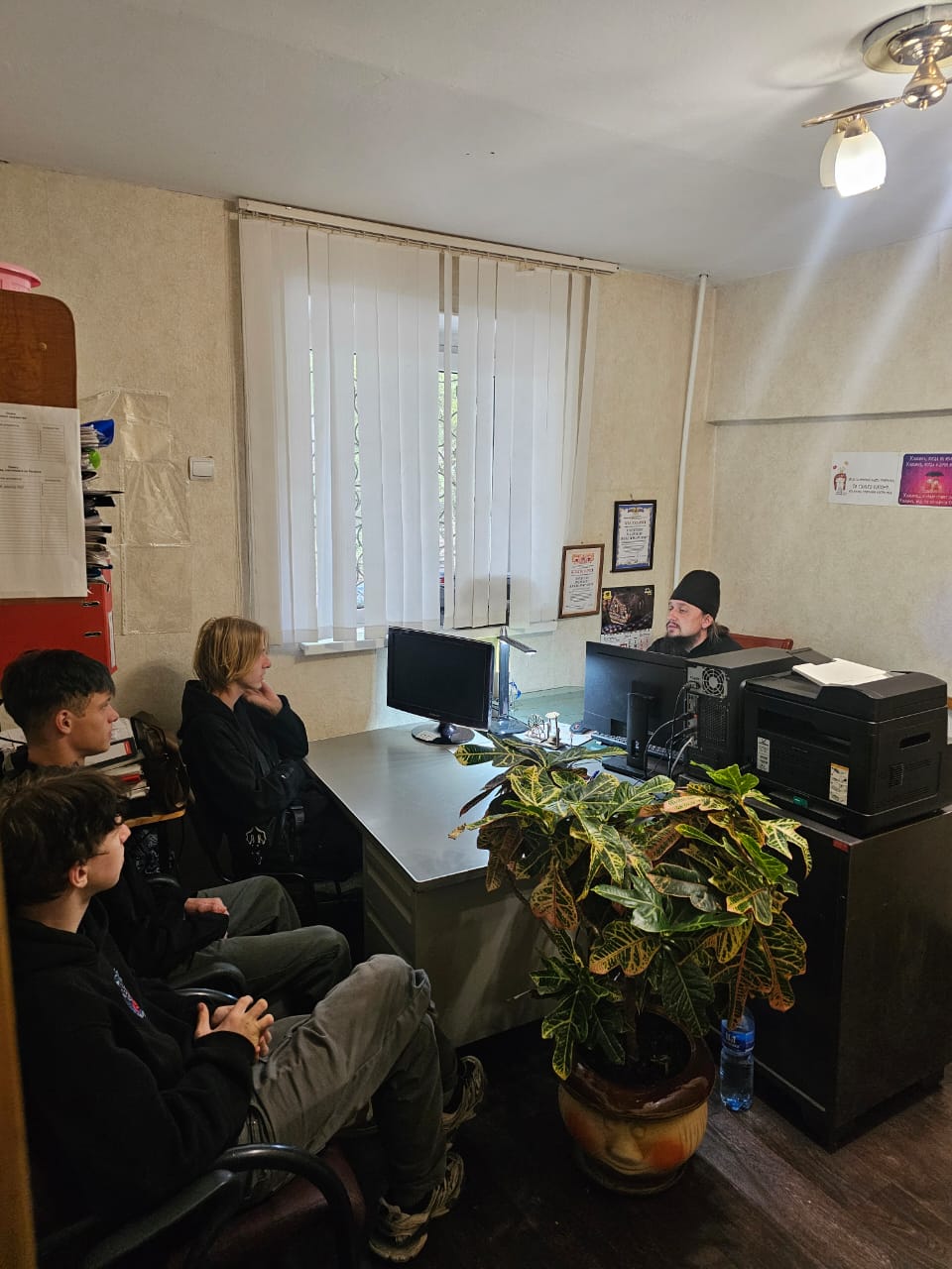 По благословению епископа Находкинского и Преображенского Николая, в филиале по г. Находке ФКУ УИИ ГУФСИН России по Приморскому краю состоялась встреча иеродиакона Филарета (Каширского) с несовершеннолетними воспитанниками учреждения. Во время беседы затронули такие жизненно важные темы, как совесть, нравственность, ответственность, говорили о том, как противостоять возникающим искушениям и как исправлять свои совершённые ошибки.