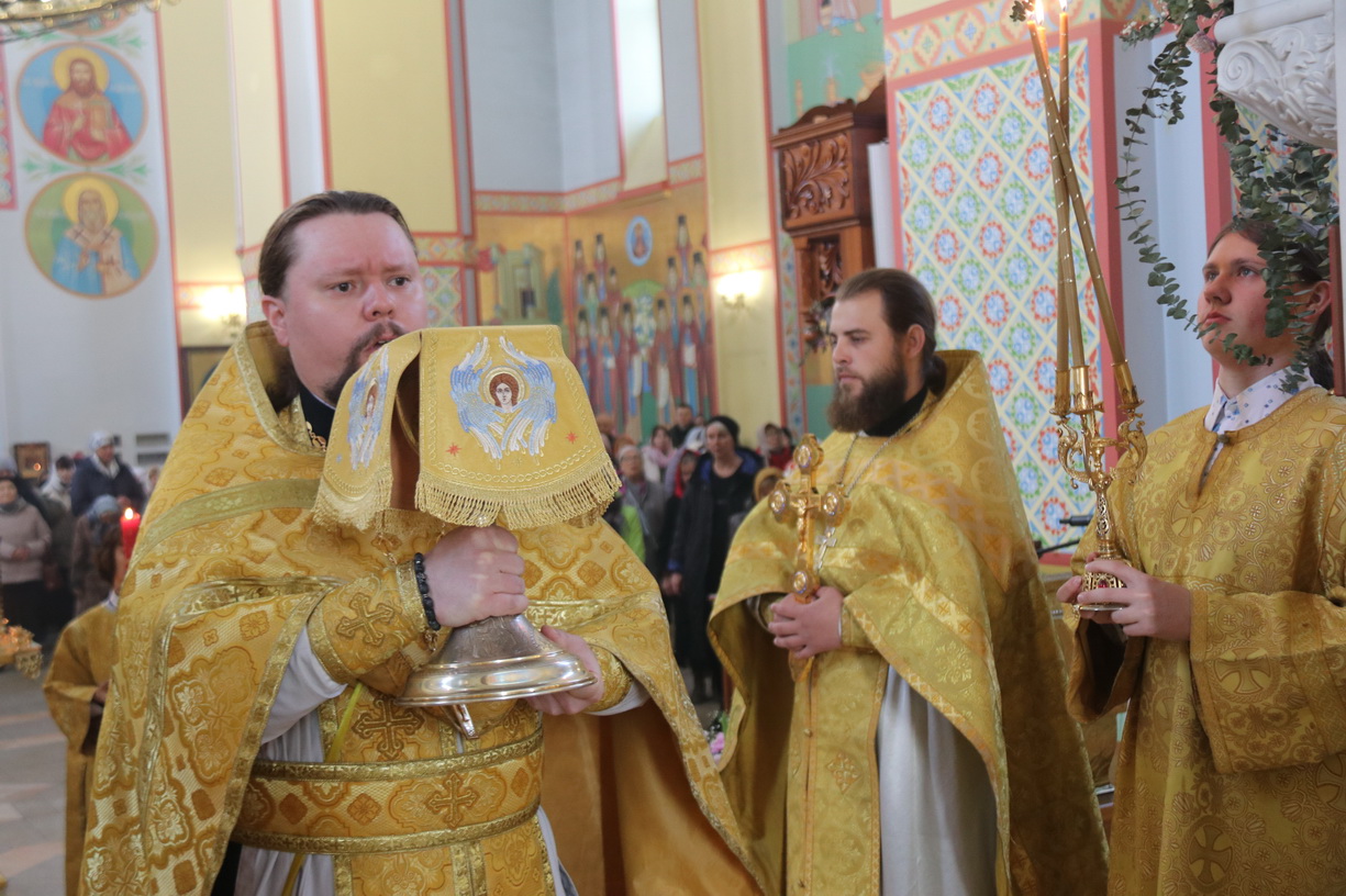 Его Преосвященству сослужили: иерей Андрей Попов; иереи Иоанн Гречишников и Илия Гречишников.