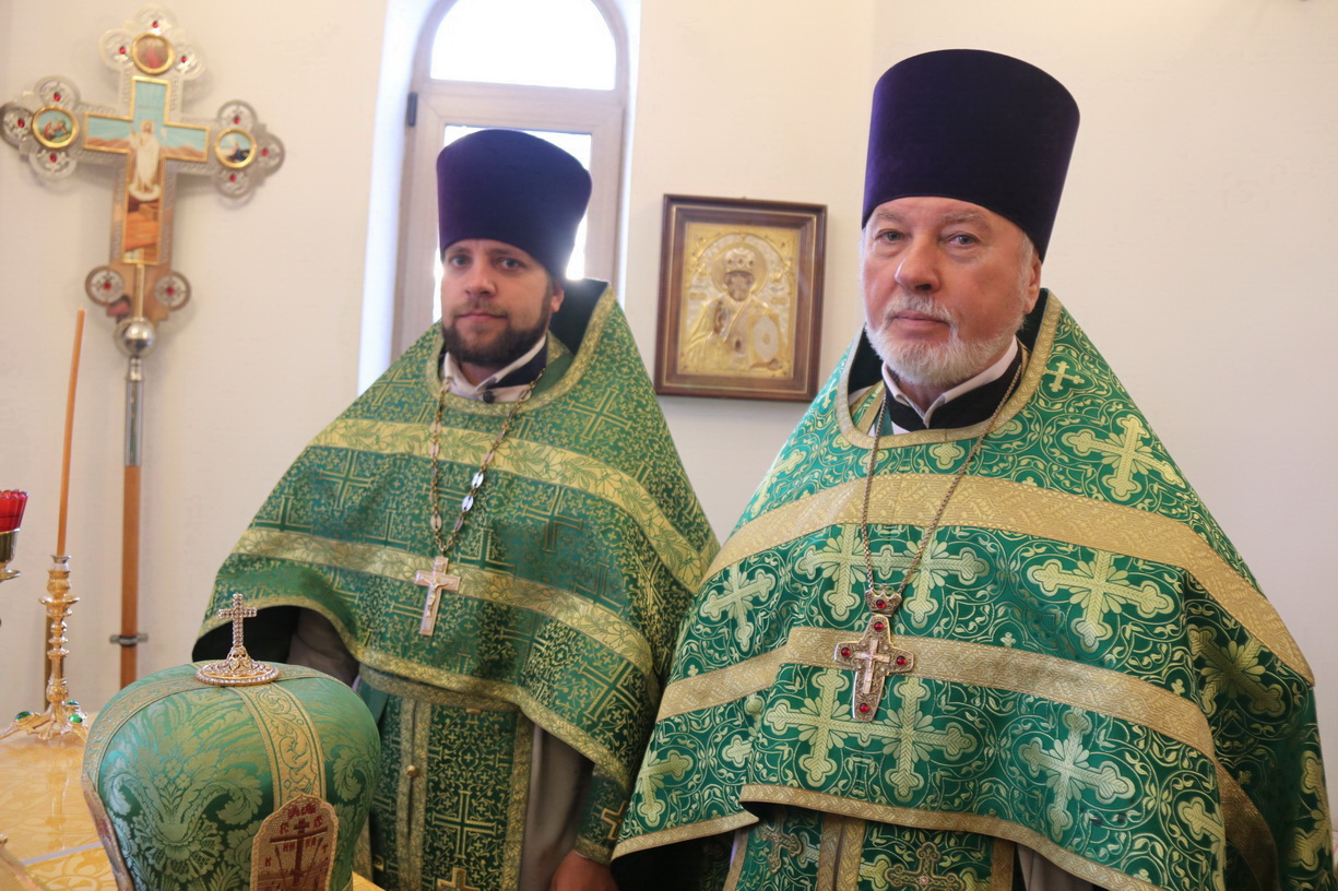 Преосвященнейшему Владыке сослужили: секретарь Находкинской епархии протоиерей Александр Коваленко; иеромонах Силуан (Березовский), благочинный Северного благочиния Находкинской епархии; игумен Варнава (Литвин); иерей Андрей Калнин, ключарь Казанского Кафедрального собора г. Находки; иерей Иоанн Капитанюк, настоятель храма Рождества Христова г. Находки.