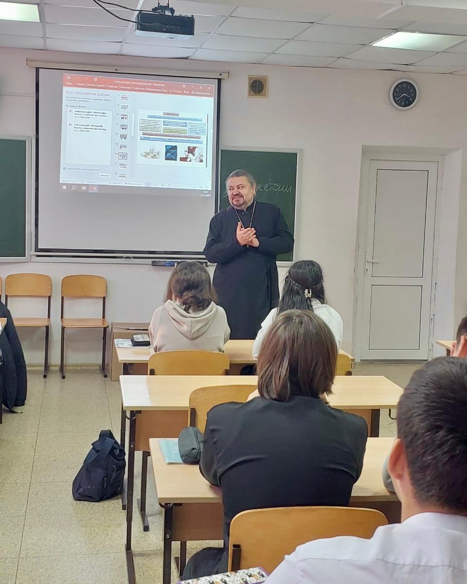 Руководитель миссионерского отдела Находкинской епархии иерей Виталий Шаркеев встретился с учащимися 9 класса школы No 7 г. Находки. Отец Виталий прочитал лекцию «Духовно-нравственные причины конфликта на Украине», рассказав о том, что с исторической точки зрения любое событие имеет череду причинно-следственных связей, которые дают нам ориентиры в оценке переживаемых событий. Важно объективно оценивать причины сложившейся ситуации.
