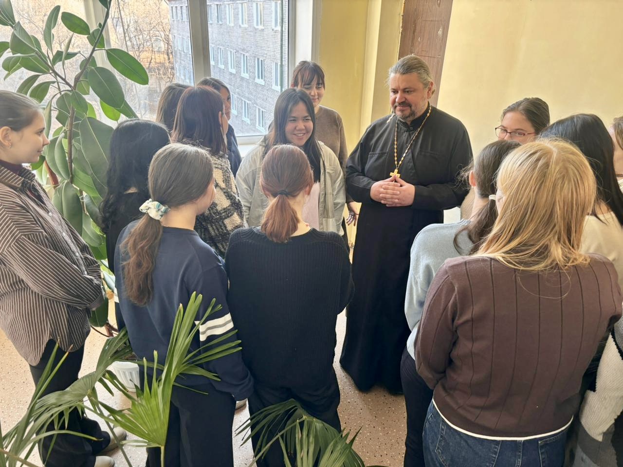 Студентки — будущие преподаватели начальных классов, с интересом слушали священника и задавали личные вопросы.