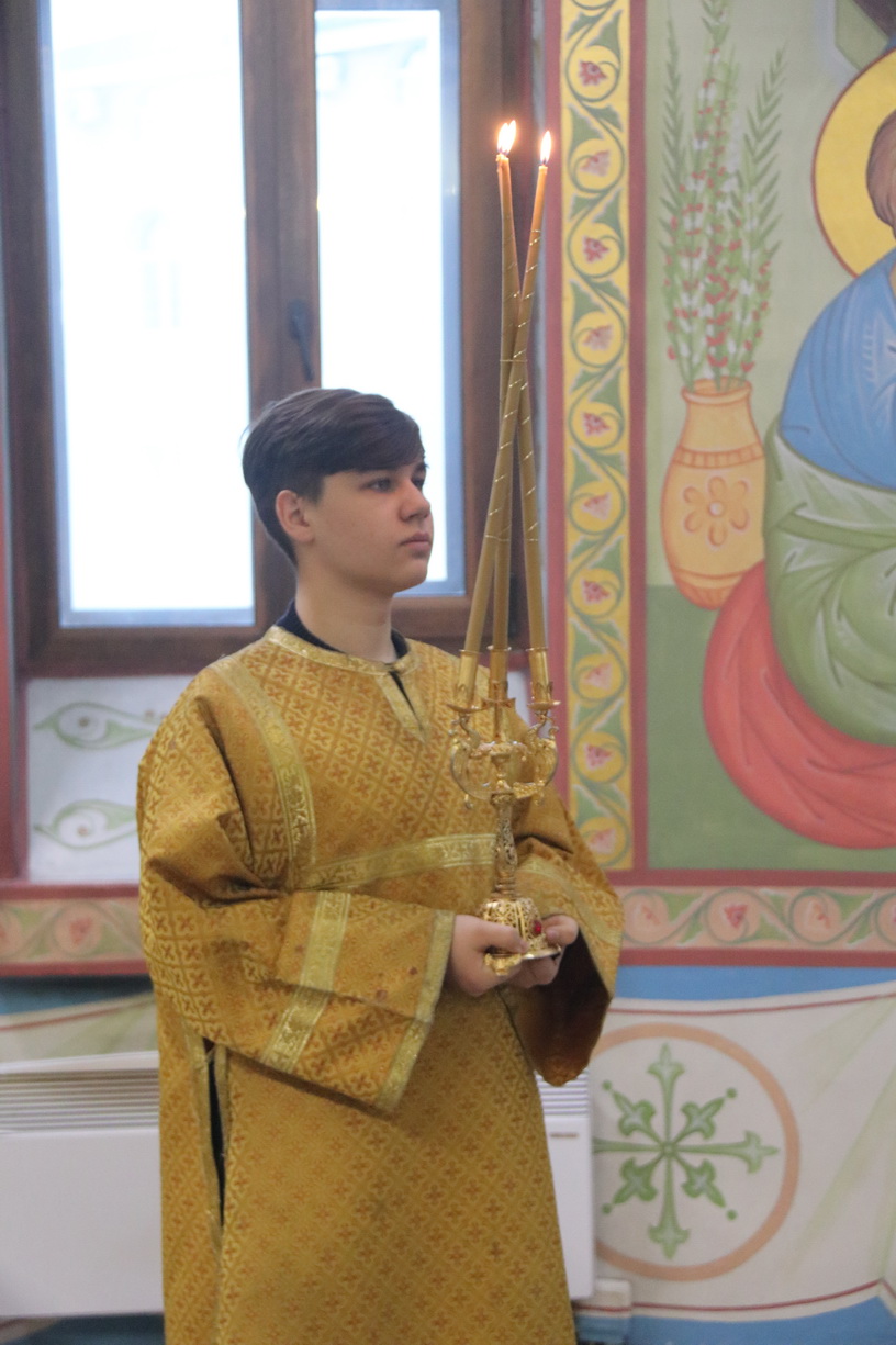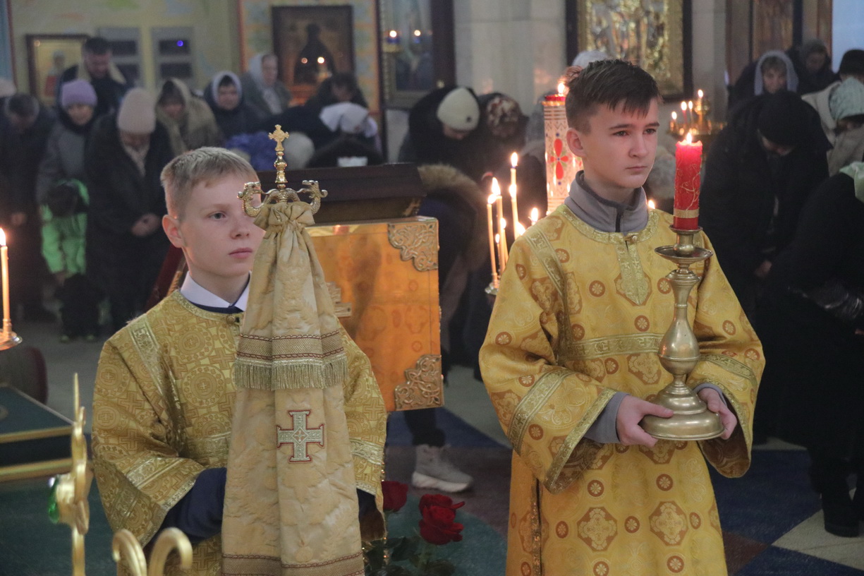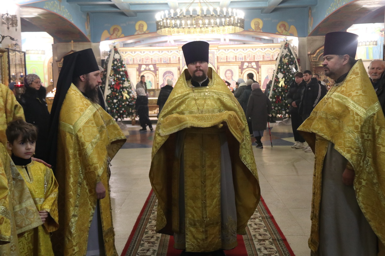 Его Преосвященству сослужили: иерей Виталий Шаркеев; иерей Андрей Попов; иеромонах Ермоген (Крещенко).