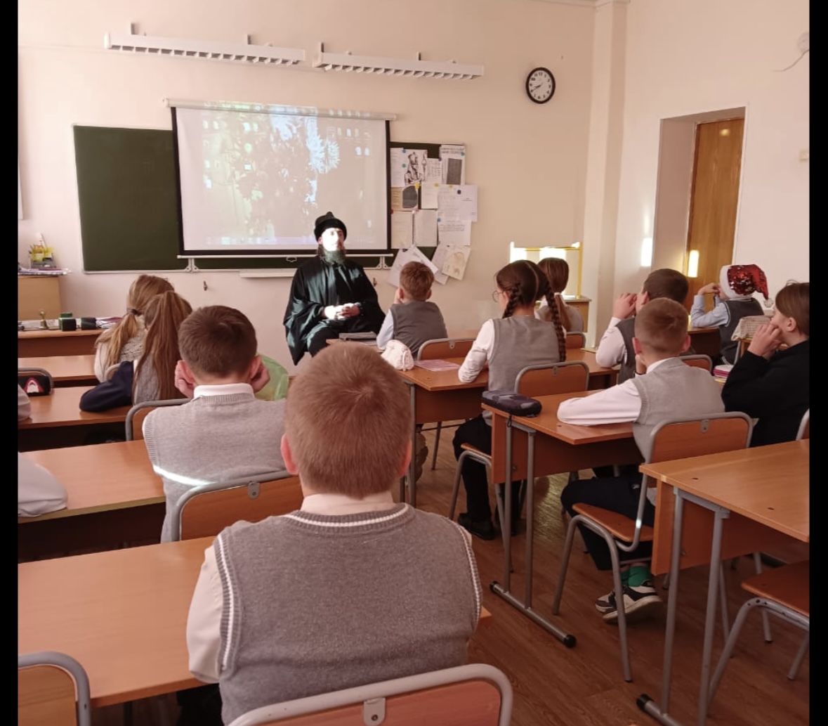 В декабре 2025 года иеродиакон Филарет (Каширский) провел занятие в школе №19 «Выбор» мкр. Врангель.