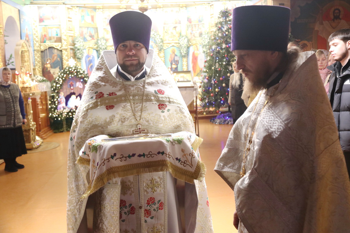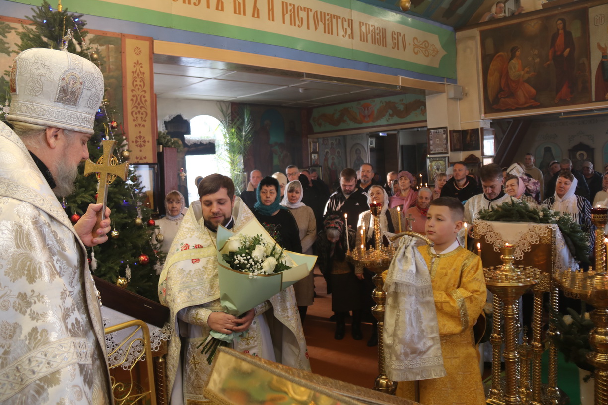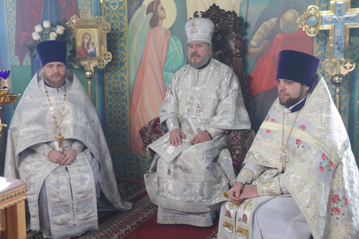 По заамвонной молитве епископ Николай в сослужении духовенства Кафедрального собора возглавил праздничное славление Рождеству Христову и обратился к прихожанам с архиерейским словом, в котором отметил жизненный подвиг празднуемых святых, и поздравил всех присутствующих с Рождественскими святками.