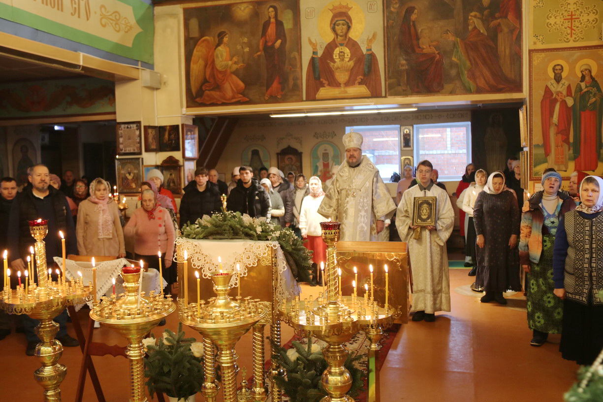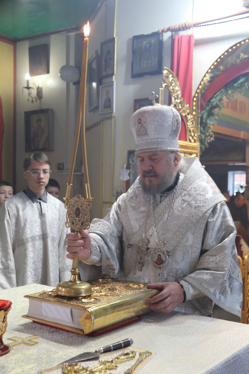 В неделю 31-ю, по Рождестве Христовом, памяти праведных Иосифа Обручника, Давида царя и апостола Иакова, брата Господня, епископ Находкинский и Преображенский Николай совершил Божественную литургию в храме Рождества Христова г. Находки.