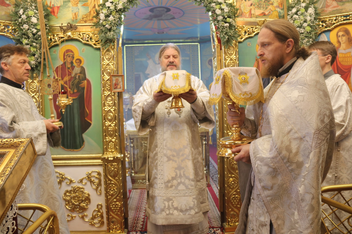 Его Преосвященству сослужили: иерей Андрей Калнин, благочиный Казанскгого Кафедрального собора и иерей Иоанн Капитанюк, настоятель Свято-Рождественского храма г. Находки.