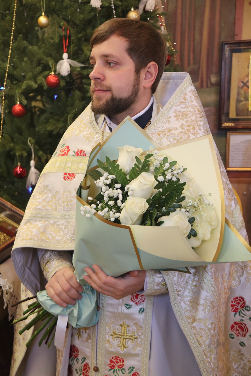 В ответном слове иерей Иоанн Капитанюк поблагодарил епископа Николая за архипастырский визит и преподнес Владыке букет цветов.